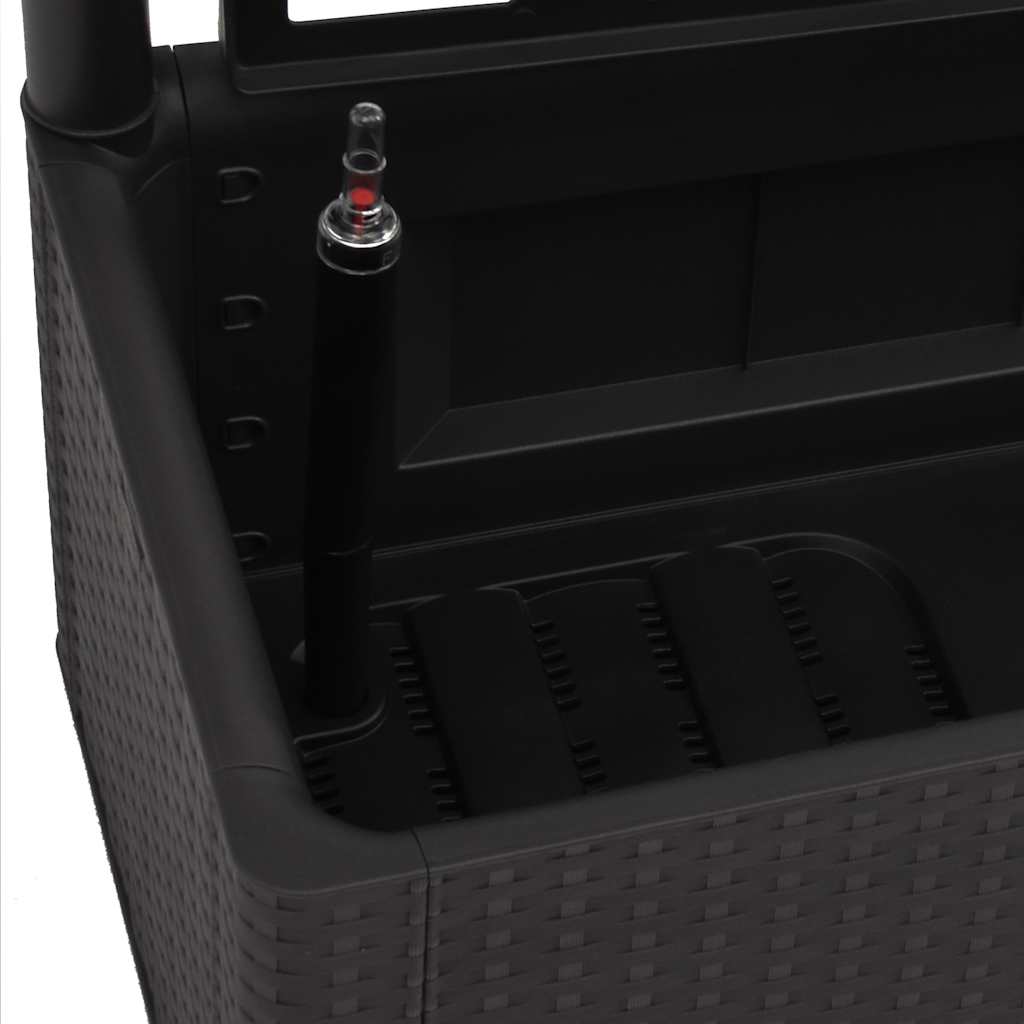 Sisäänrakennettu säleikkö tarjoaa oivan tuen köynnöskasveille, kuten yrteille, tomaateille, herneille jne. Kukkalaatikko on valmistettu kestävästä, UV-, sään- ja pakkasenkestävästä muovista, joten se sopii käytettäväksi sekä sisä- että ulkotiloissa. Suunnittelu muistuttaa aitoa rottinkia. Materiaalia on pestävää ja helppo puhdistaa. Kukkalaatikossa on itsekastelusysteemi, joka imeyttää vettä 90 litran säiliöstä, jossa on myös ylivuotoreiät ylikastelun estämiseksi. Veden tason indikaattori mukana toimituksessa.