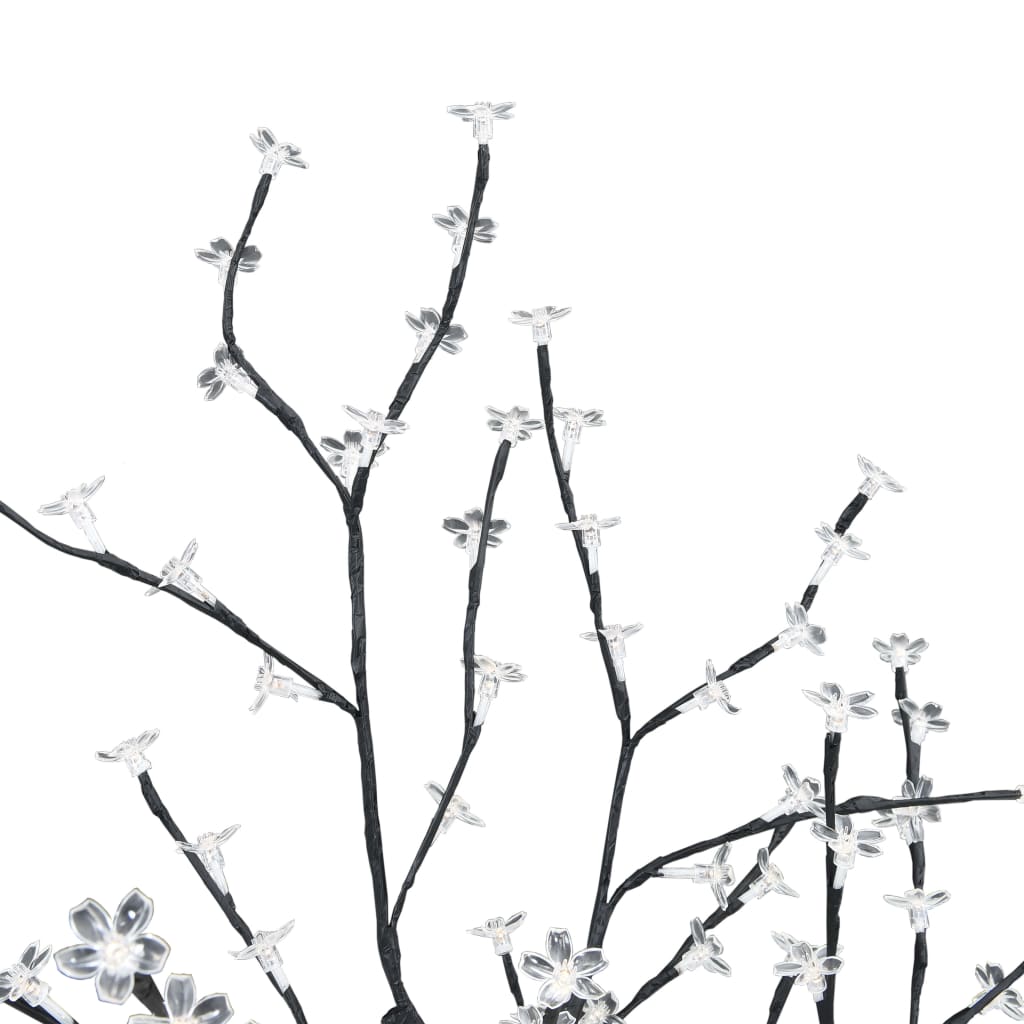 Tämä puu valaistuu energiaa säästävillä LED-valoilla, jotka valaisevat huoneesi sinisellä valolla ja toimivat myös epäsuorana valona. Kirsikankukkaset on valmistettu pehmeästä materiaalista; siksi ne ovat joustavia ja vaikeita katkaista. Oksat voidaan levittää erikseen ja metallialusta lisää puun vakautta. Toimituksessa on myös 8-toimintoinen muuntaja. Tämä joulukoriste sopii sisä- ja ulkokäyttöön.