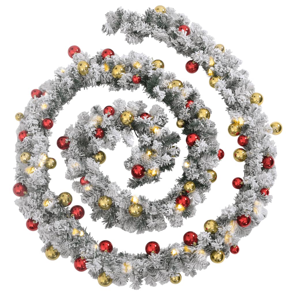 Jouluseppele koristeilla ja LED-valoilla vihreä 10 m PVC