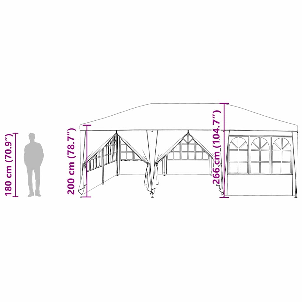 • Kestävä materiaali: Valmistettu huippulaatuisesta polyeteenistä, tämä juhlatalli on vedenpitävä ja UV-kestävä, varmistaen, että sinä ja vieraasi pysytte mukavina sateen tai auringon alla. Vahva teräsrunko pitää sen vakaana, joten voit isännöidä ilman huolia.