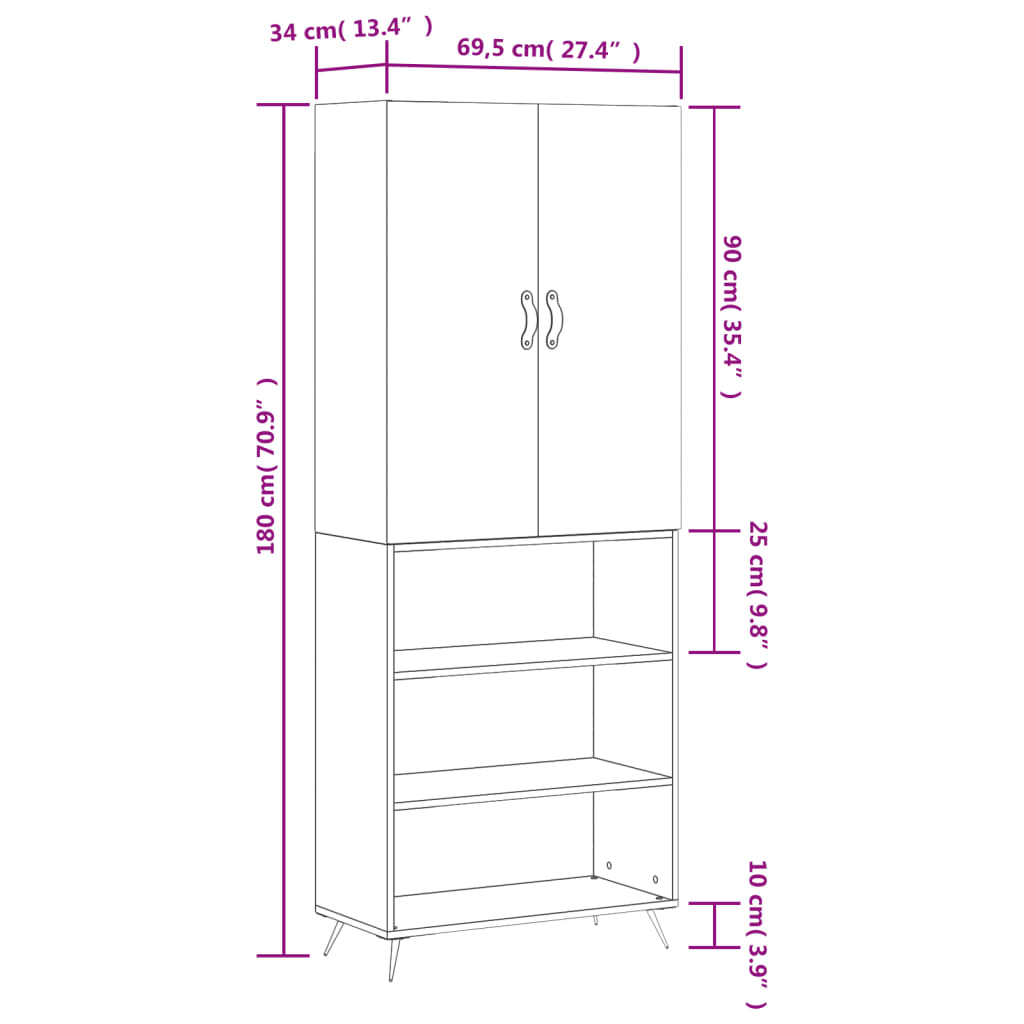 • Mitat: 69,5 x 34 x 180 cm (L x S x K)