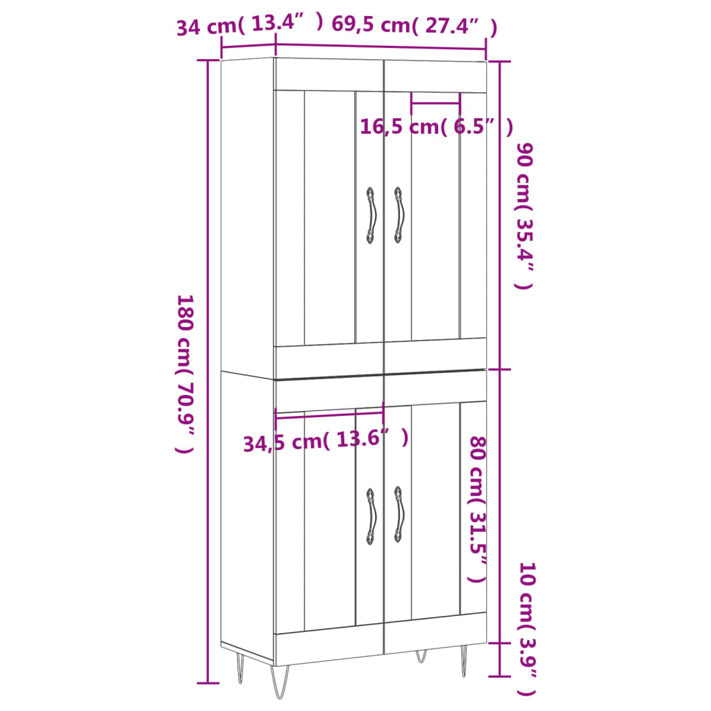 • Kaapin yläosan mitat: 69,5 x 34 x 90 cm (L x S x K)