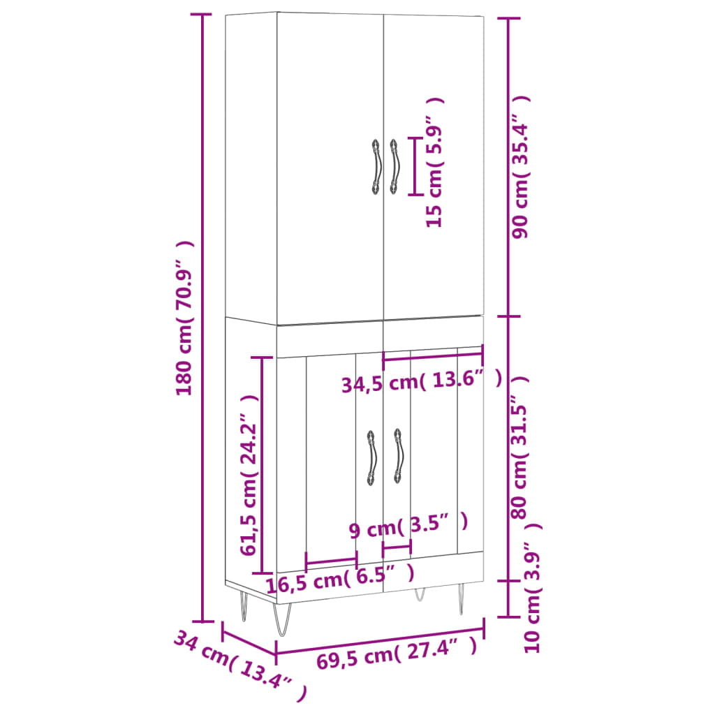 • Kaapin yläosan mitat: 69,5 x 34 x 90 cm (L x S x K)