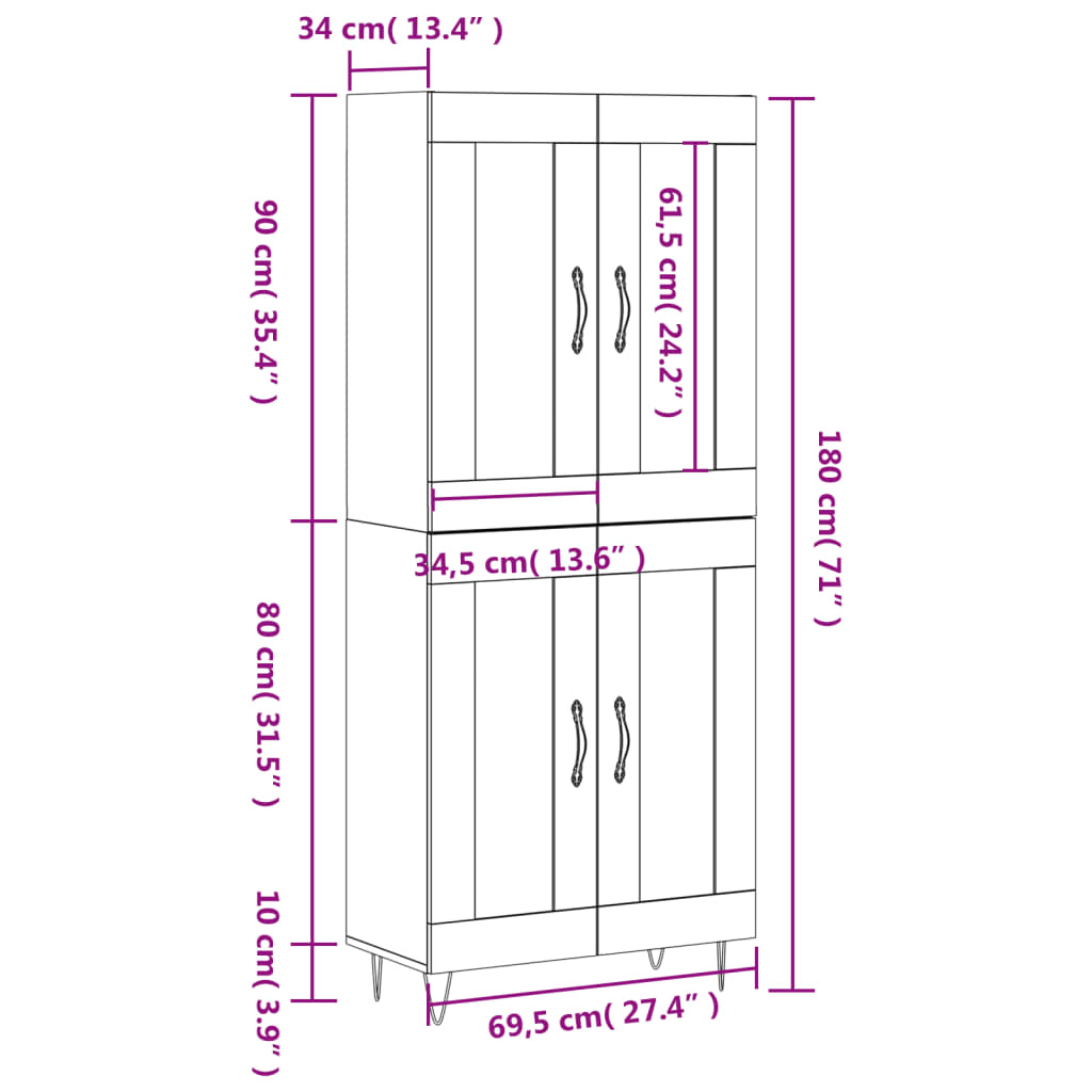 • Kaapin yläosan mitat: 69,5 x 34 x 90 cm (L x S x K)