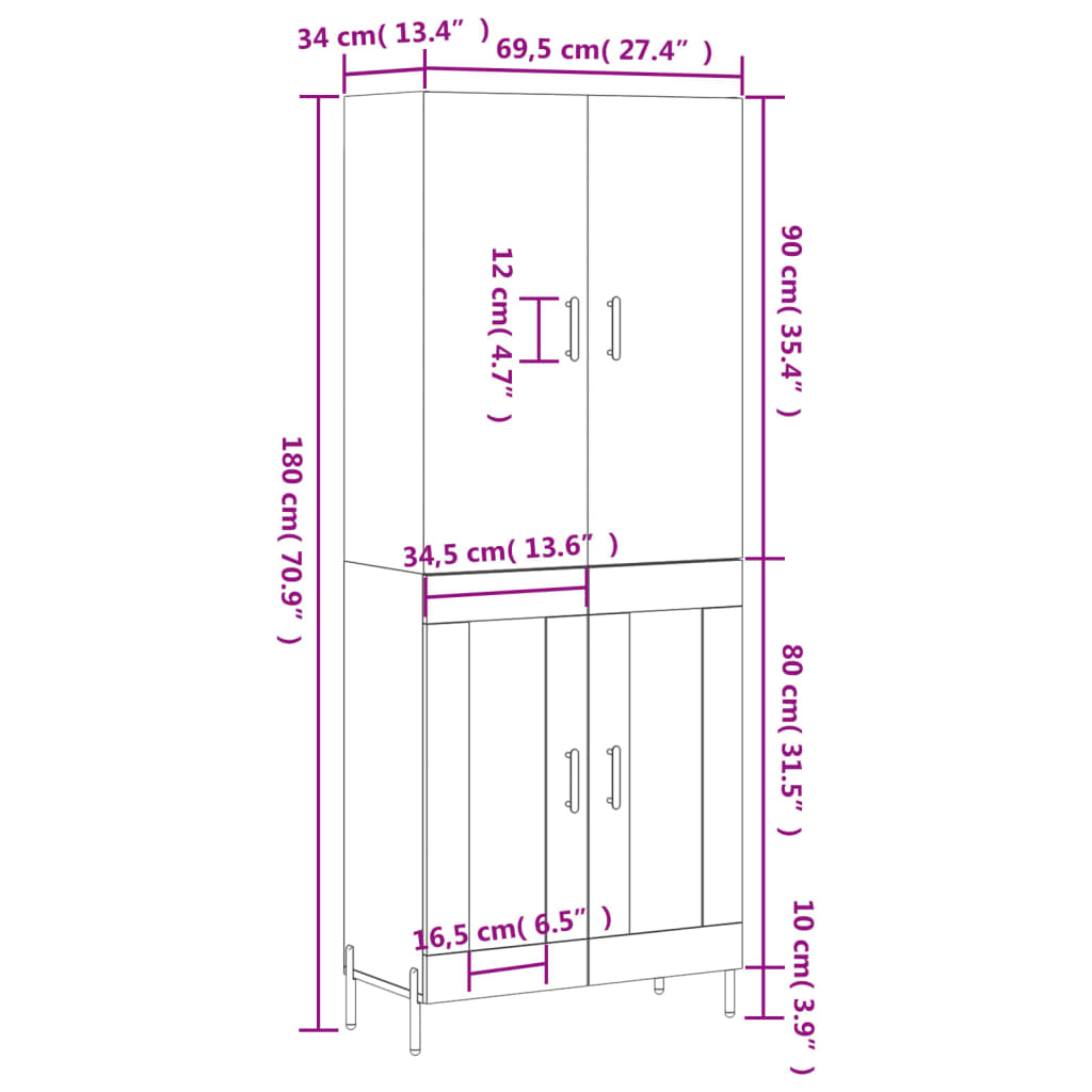 • Mitat: 69,5 x 34 x 180 cm (L x S x K)