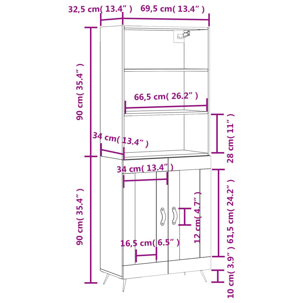 • Kaapin yläosan mitat: 69,5 x 32,5 x 90 cm (L x S x K)