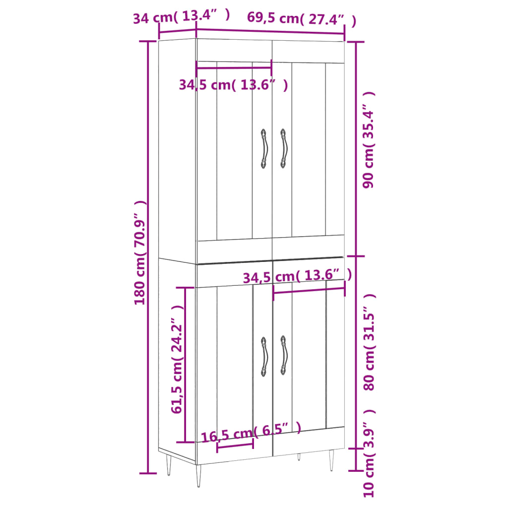 • Mitat: 69,5 x 34 x 180 cm (L x S x K)