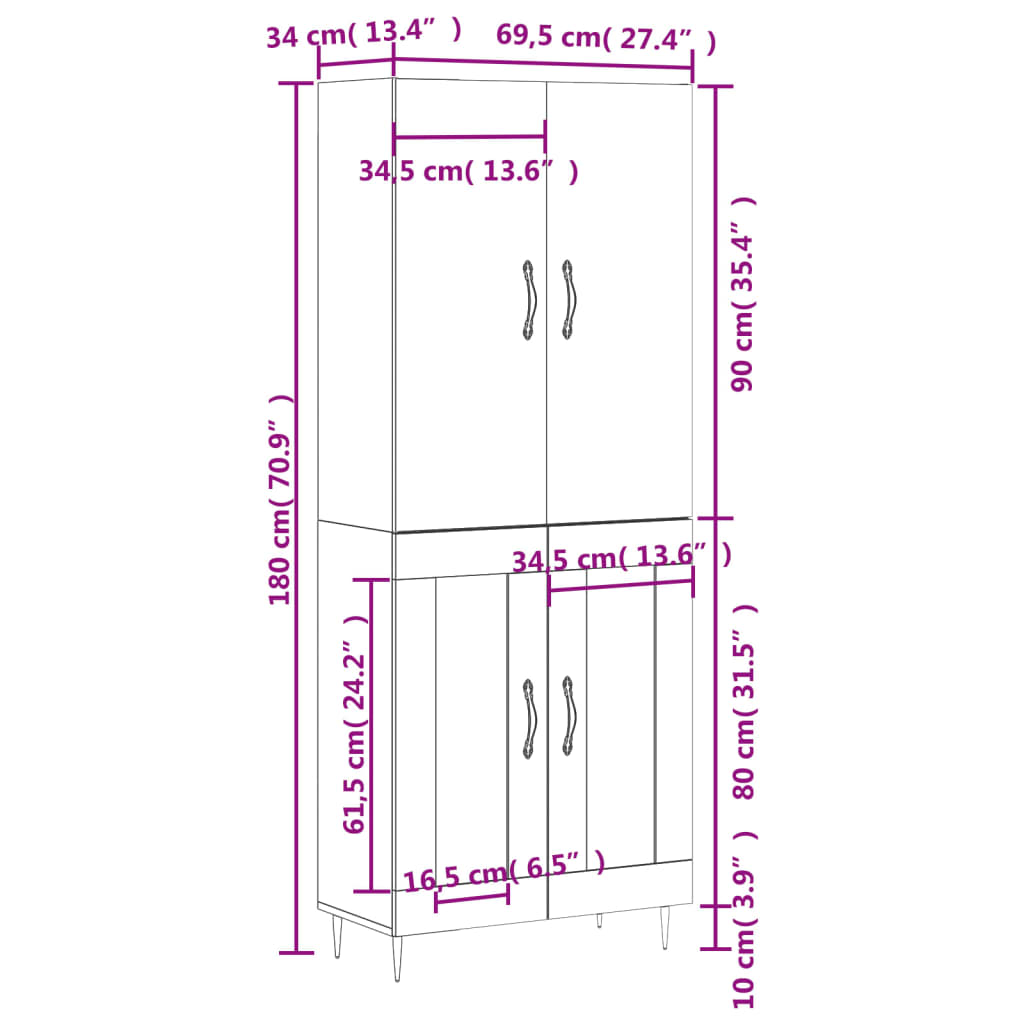 • Mitat: 69,5 x 34 x 180 cm (L x S x K)