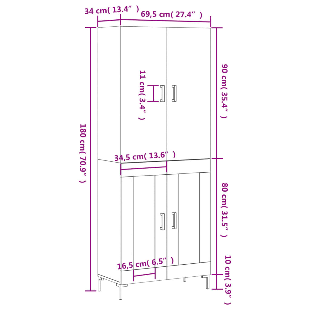• Mitat: 69,5 x 34 x 180 cm (L x S x K)