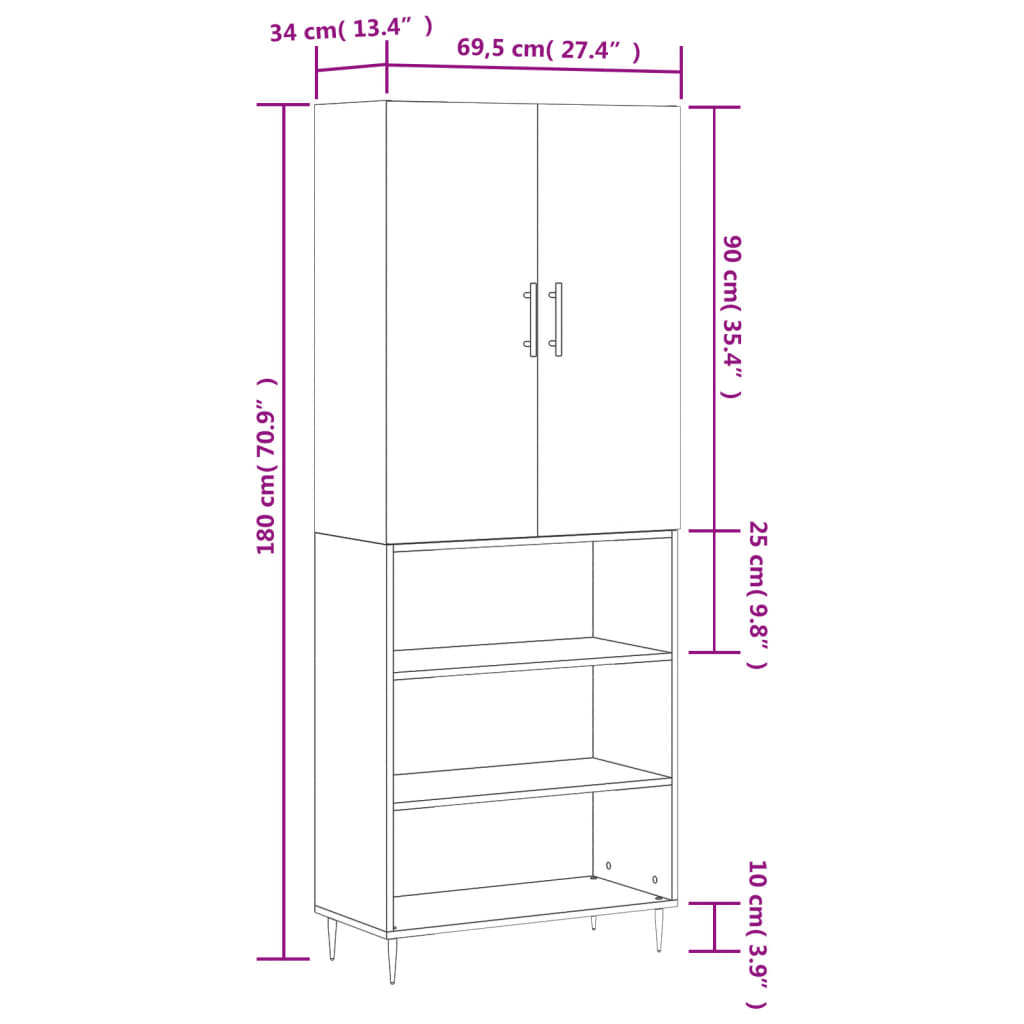 • Mitat: 69,5 x 34 x 180 cm (L x S x K)