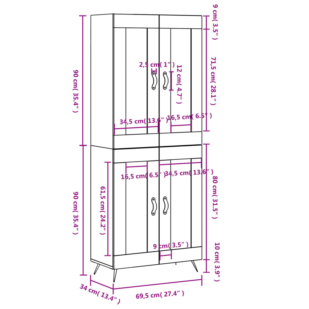 Kaappi harmaa Sonoma 69,5x34x180 cm tekninen puu