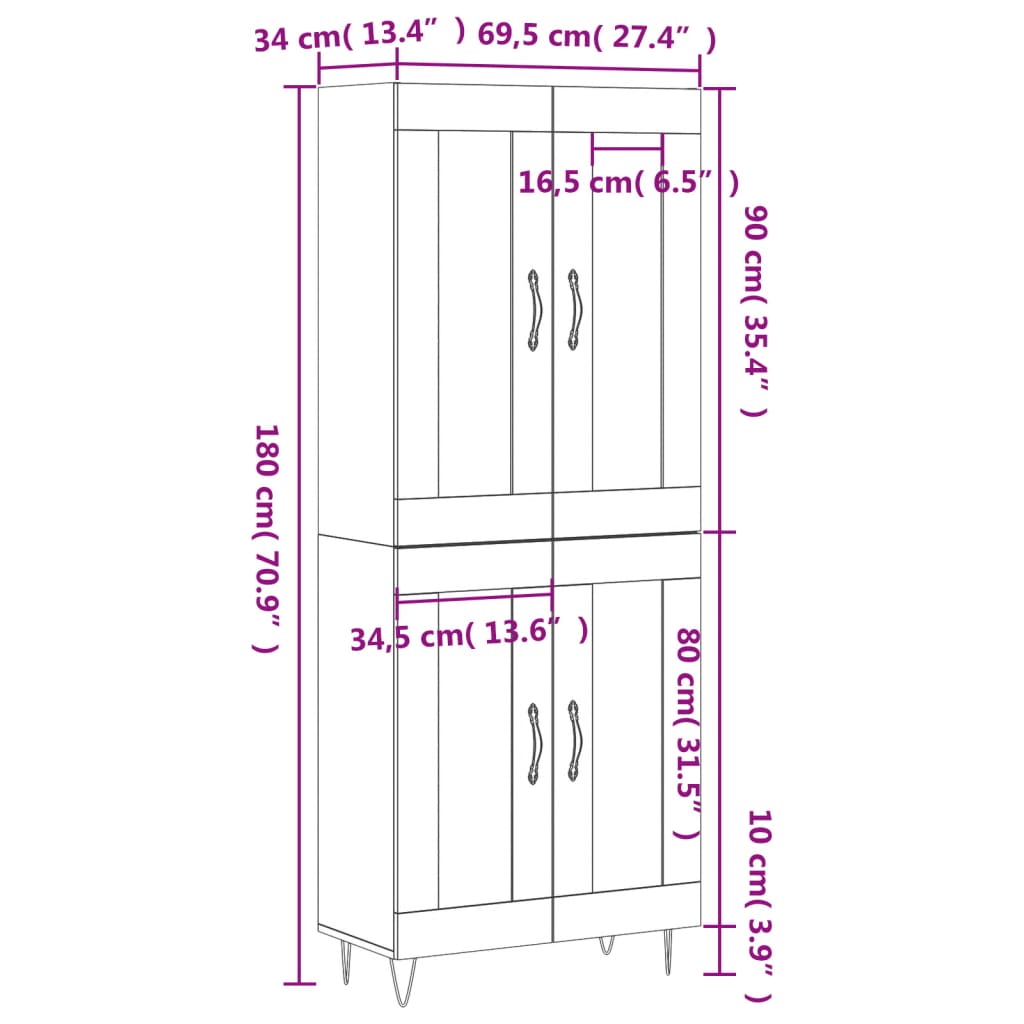 Kaappi harmaa Sonoma 69,5x34x180 cm tekninen puu