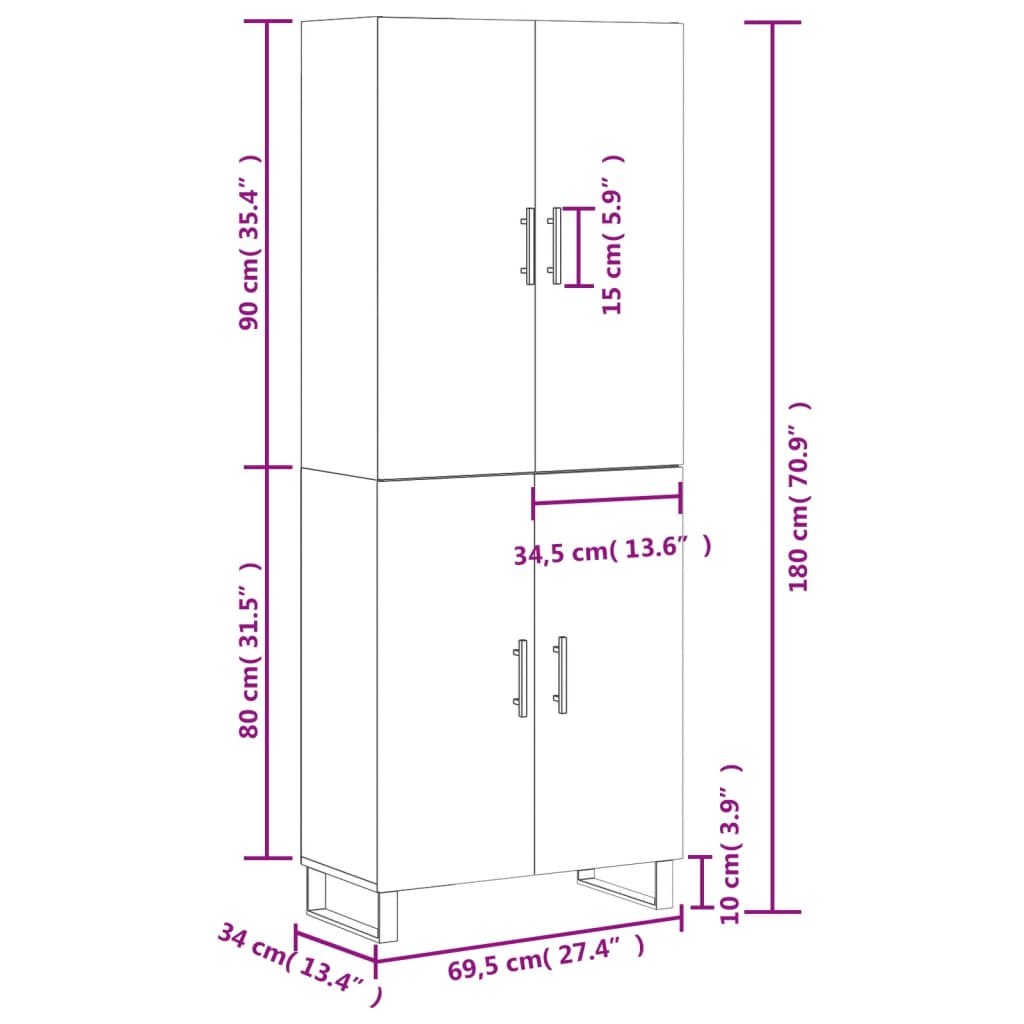 • Mitat: 69,5 x 34 x 180 cm (L x S x K)