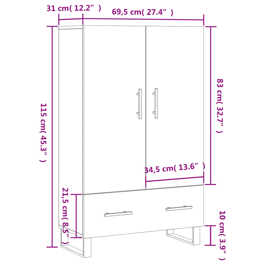 Kaappi Sonoma-tammi 69,5x31x115 cm tekninen puu