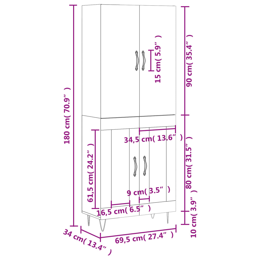 Kaappi Sonoma tammi 69,5x34x180 cm tekninen puu
