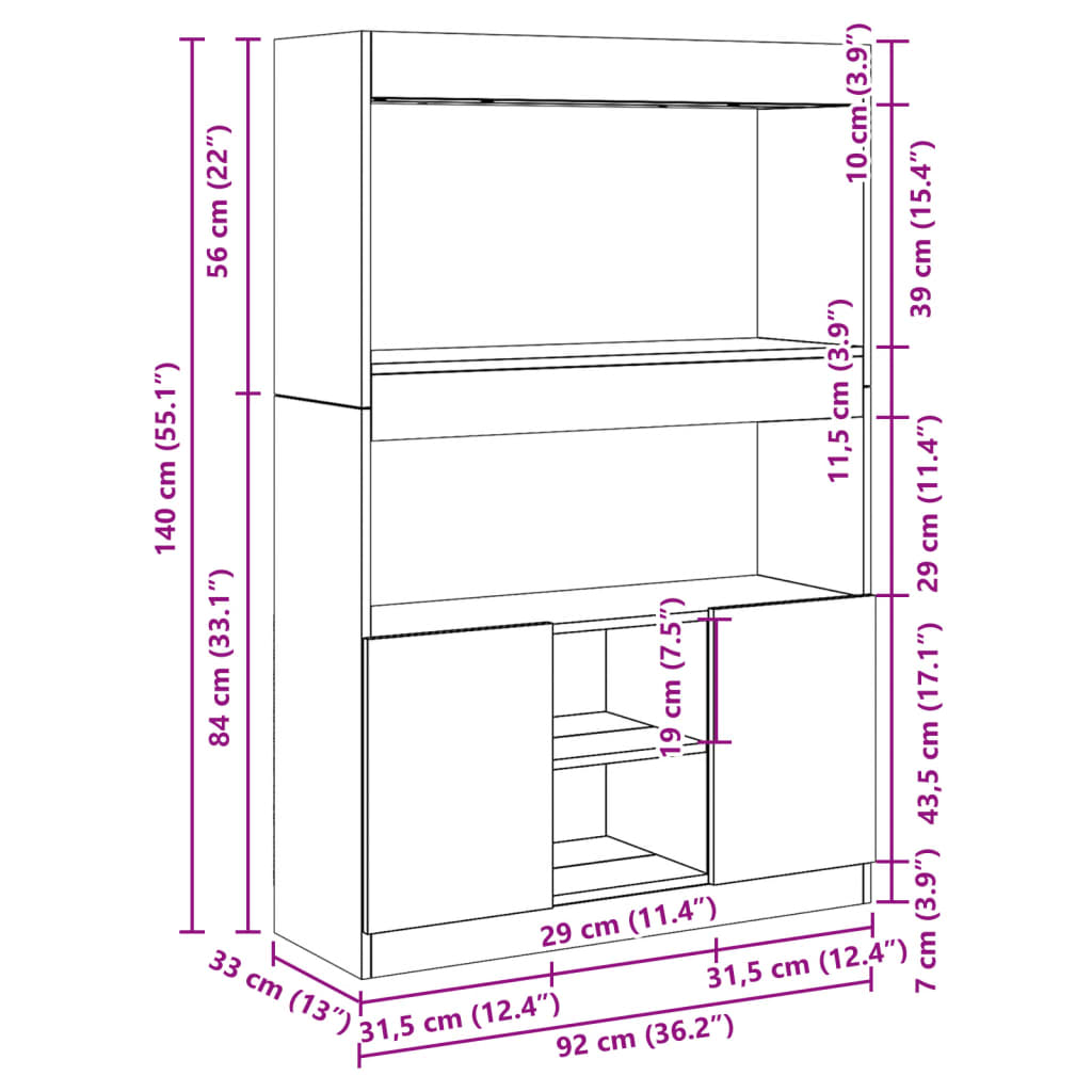 • Hyllyn mitat (ylä): 89 x 31,5 x 39 cm (L x S x K)