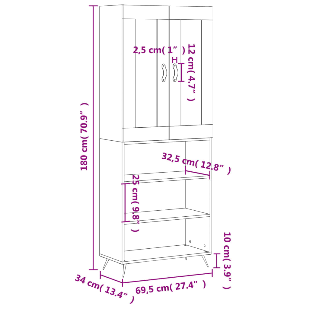 Kaappi valkoinen 69,5x34x180 cm tekninen puu