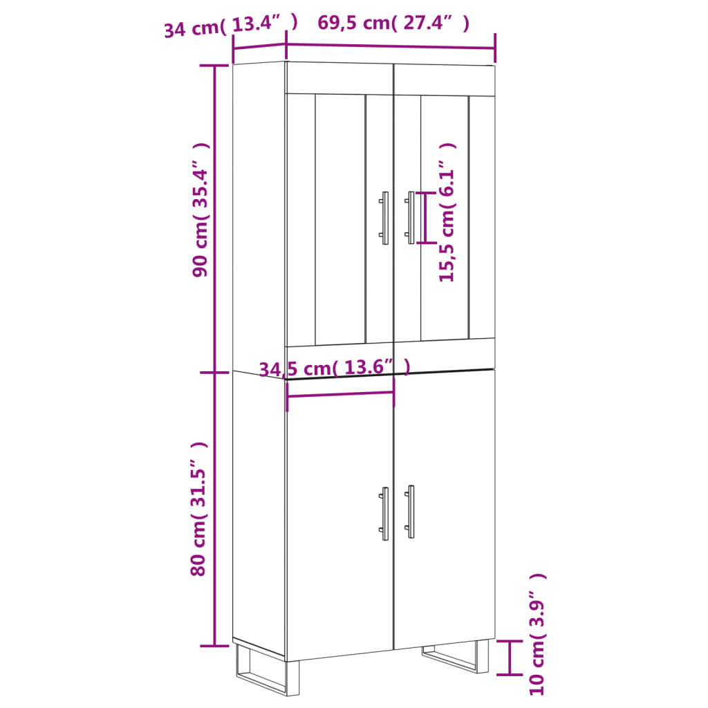 Kaappi valkoinen 69,5x34x180 cm tekninen puu