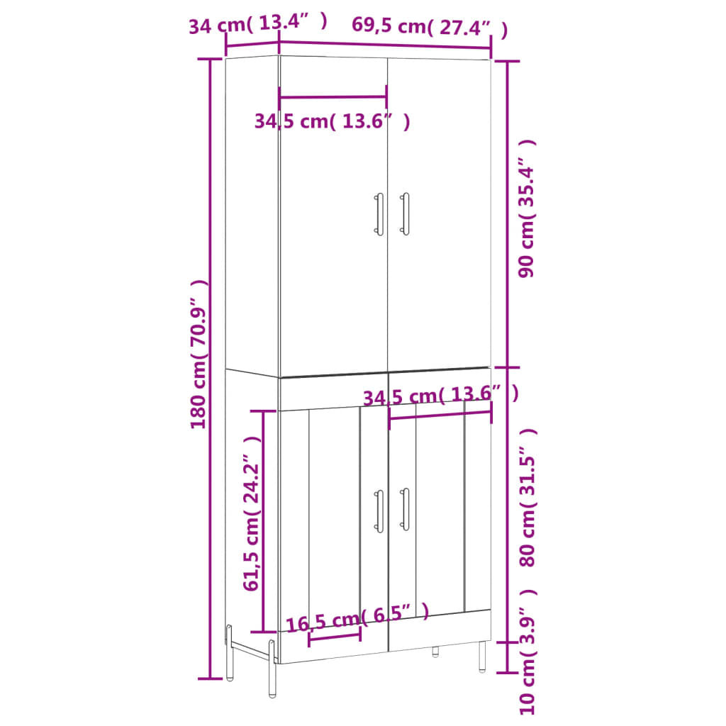 • Mitat: 69,5 x 34 x 180 cm (L x S x K)