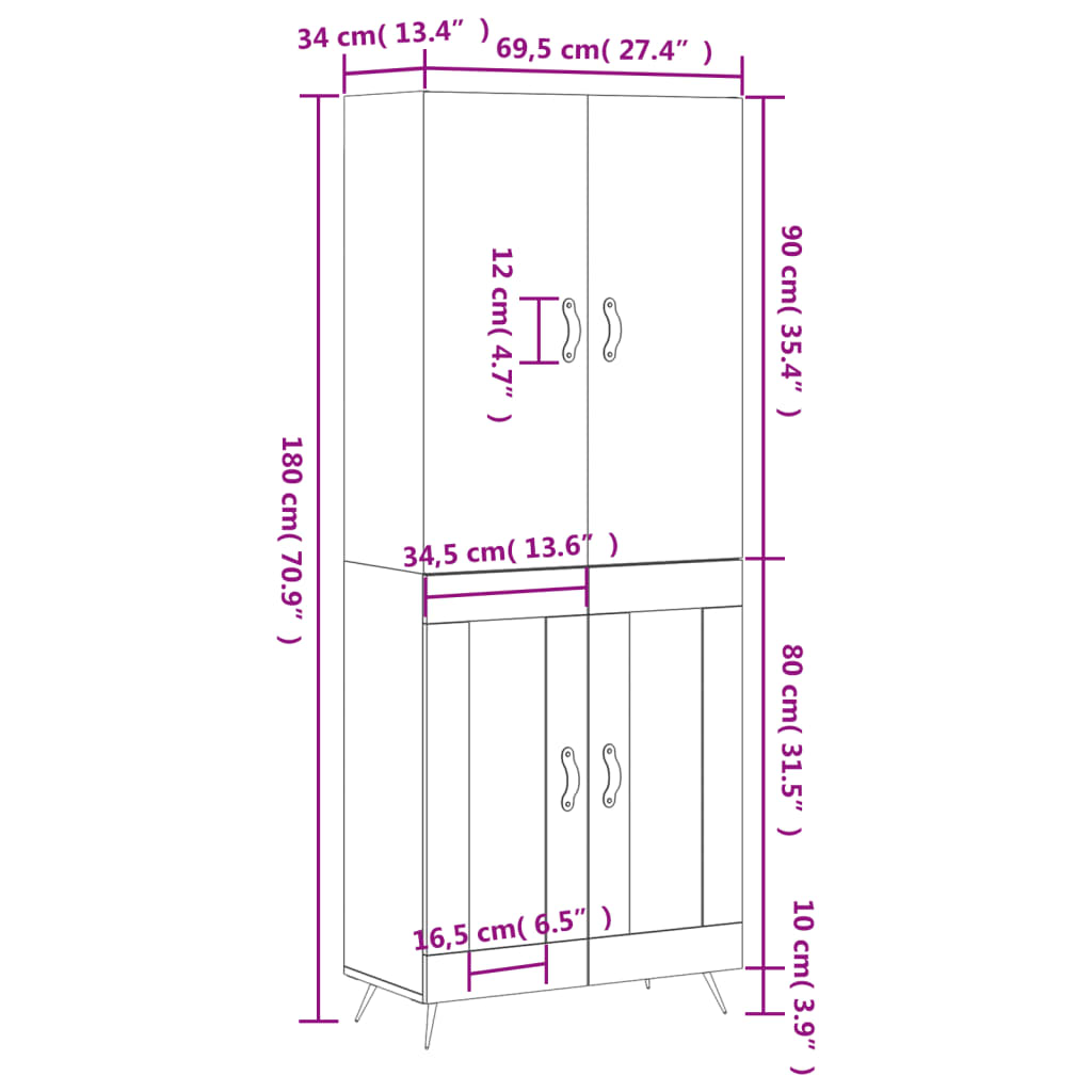 Kaappi valkoinen 69,5x34x180 cm tekninen puu