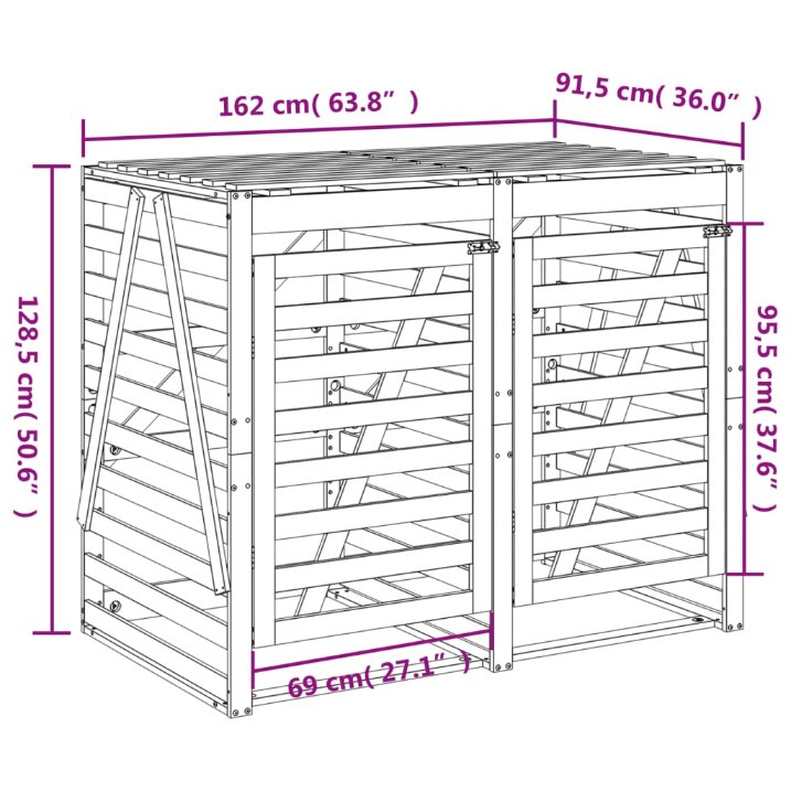 Tämä puinen kahden roska-astian vaja pitää puutarhasi roska-astiat poissa näkyvistä ja luo kauniin ja siistin ympäristön.