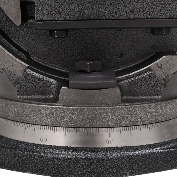 Jykevästä valuraudasta valmistetussa kaksiakselisessa ruuvipuristimessa on kallistus- ja kiertotoiminnot. Sen leukojen leveys on 100 mm. Sen kiinteiden kierteiden avulla työkappaleiden vakaa puristus onnistuu vaivatta.