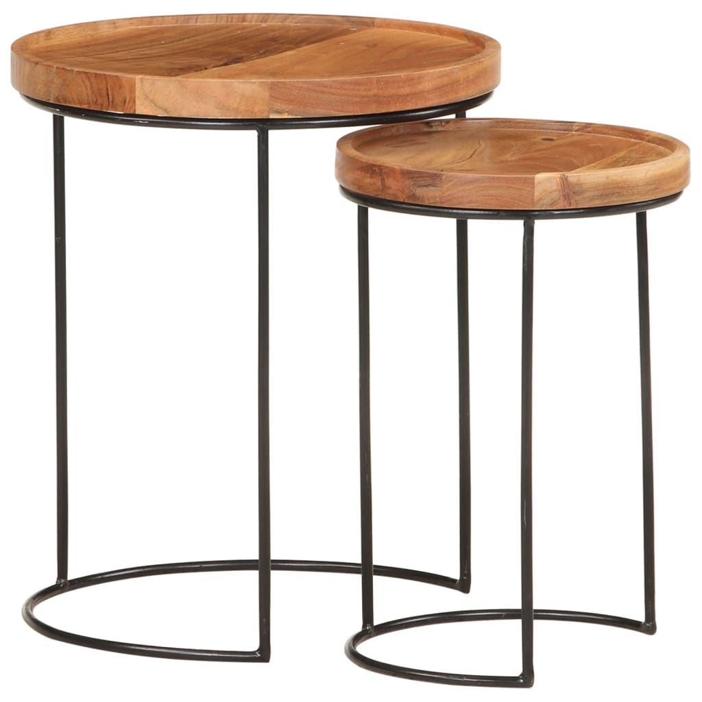 Kaksiosainen sohvapöytäsarja täysi akaasiapuu ja teräs