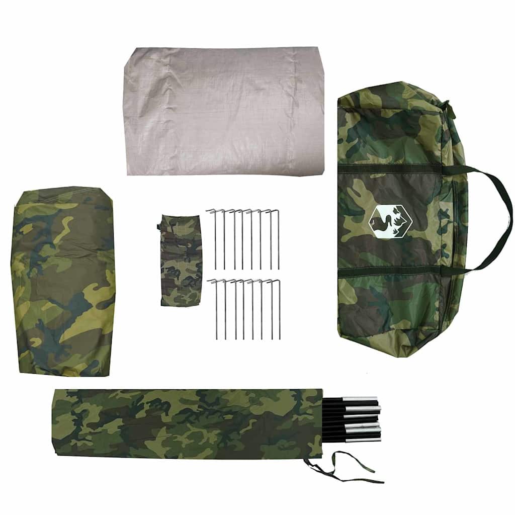 Tämä kalastusteltta on mainio valinta ulkona hengailuun. Siinä on tilaa jopa seitsemälle, ja se on helppo kuljettaa ja pystyttää. Sen maastokuviointi ja vettä pitävät materiaalit sulautuvat hyvin luontoon. Loistava valinta perhekokoontumisiin, kalastusreissuille tai ryhmäleireille.