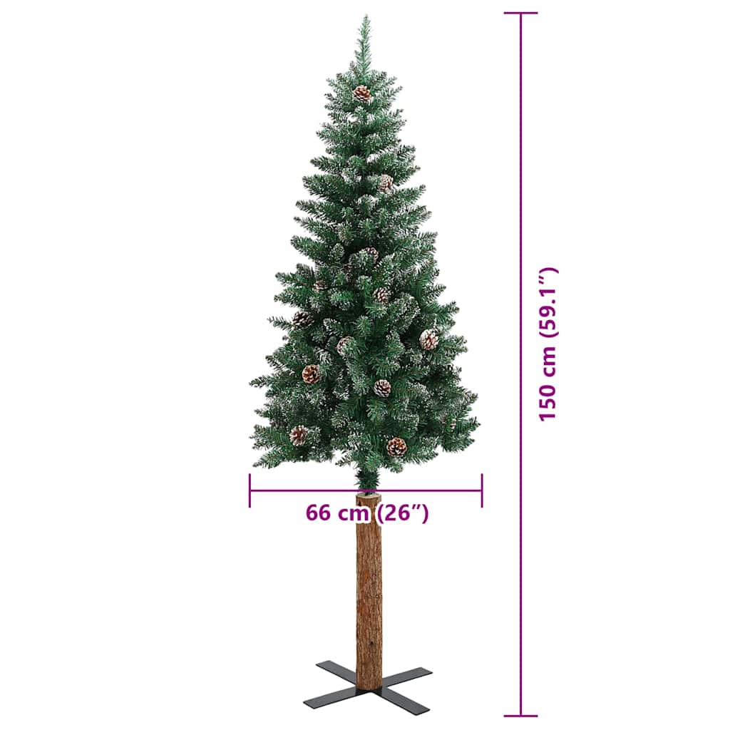 Kapea joulupuu Vihreä ja valkoinen 150 cm PVC ja massiivipetäjä