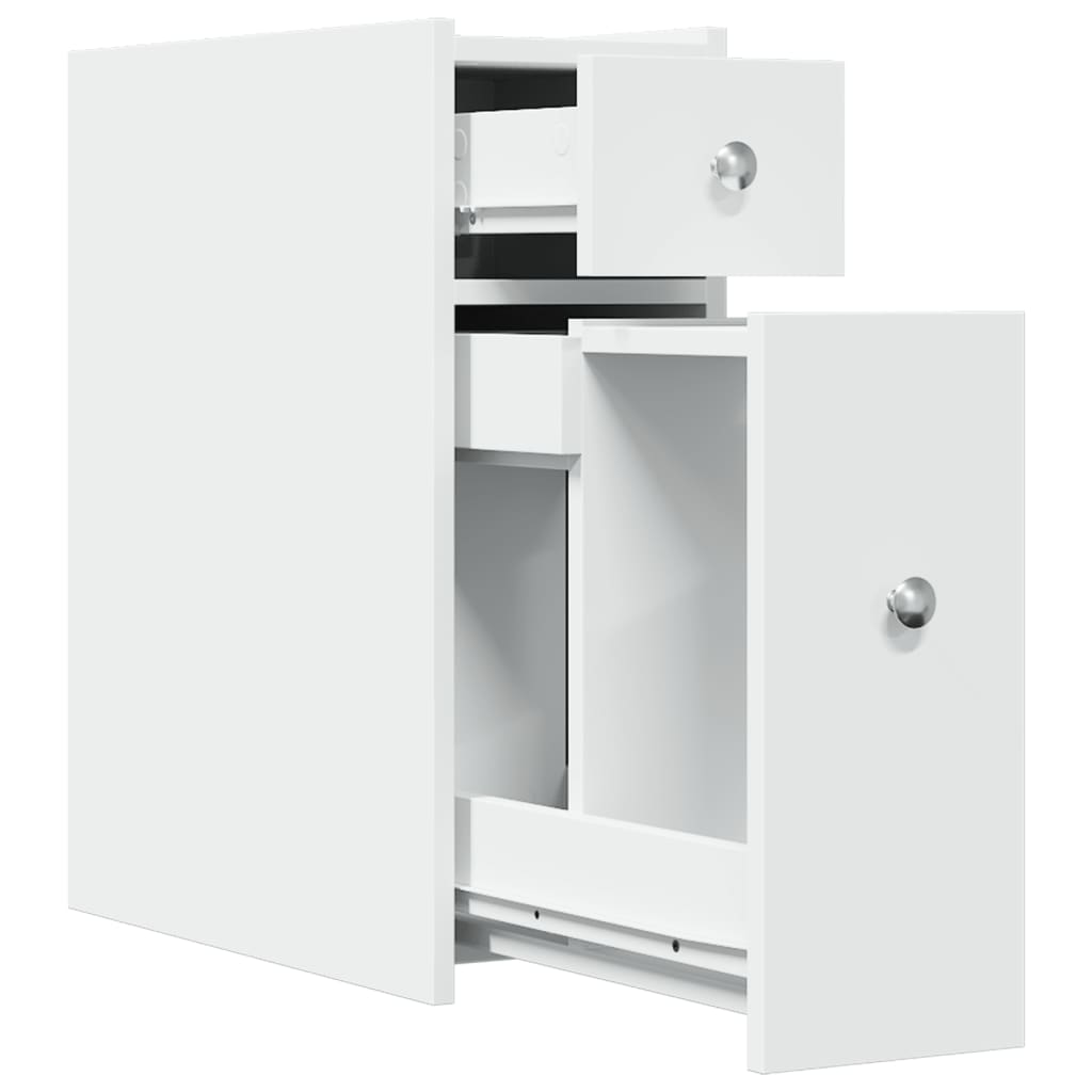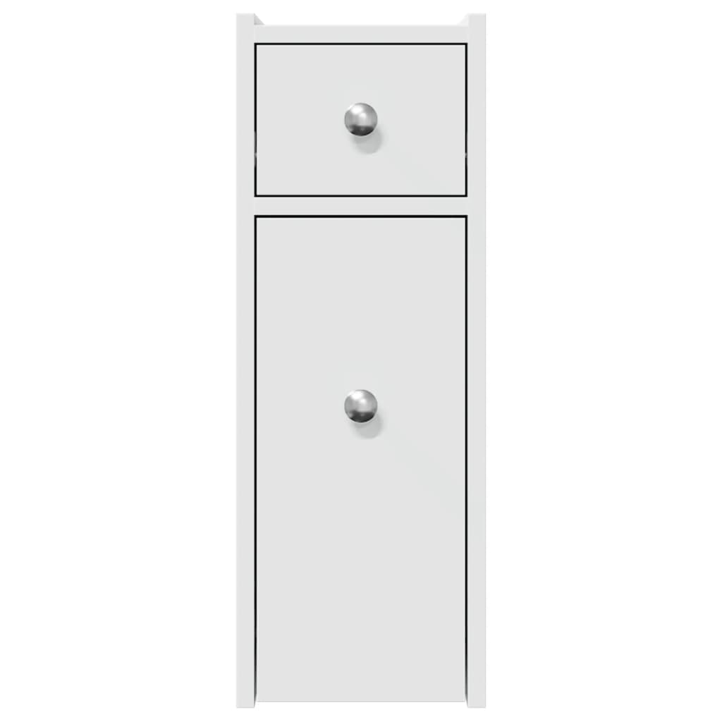 Kapea kylpyhuonekaappi pyörillä valkoinen tekninen puu