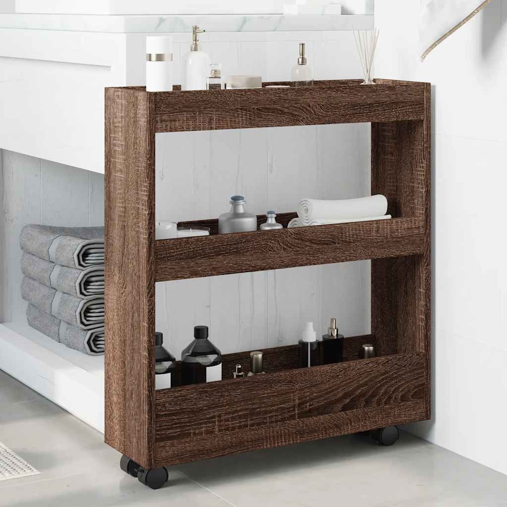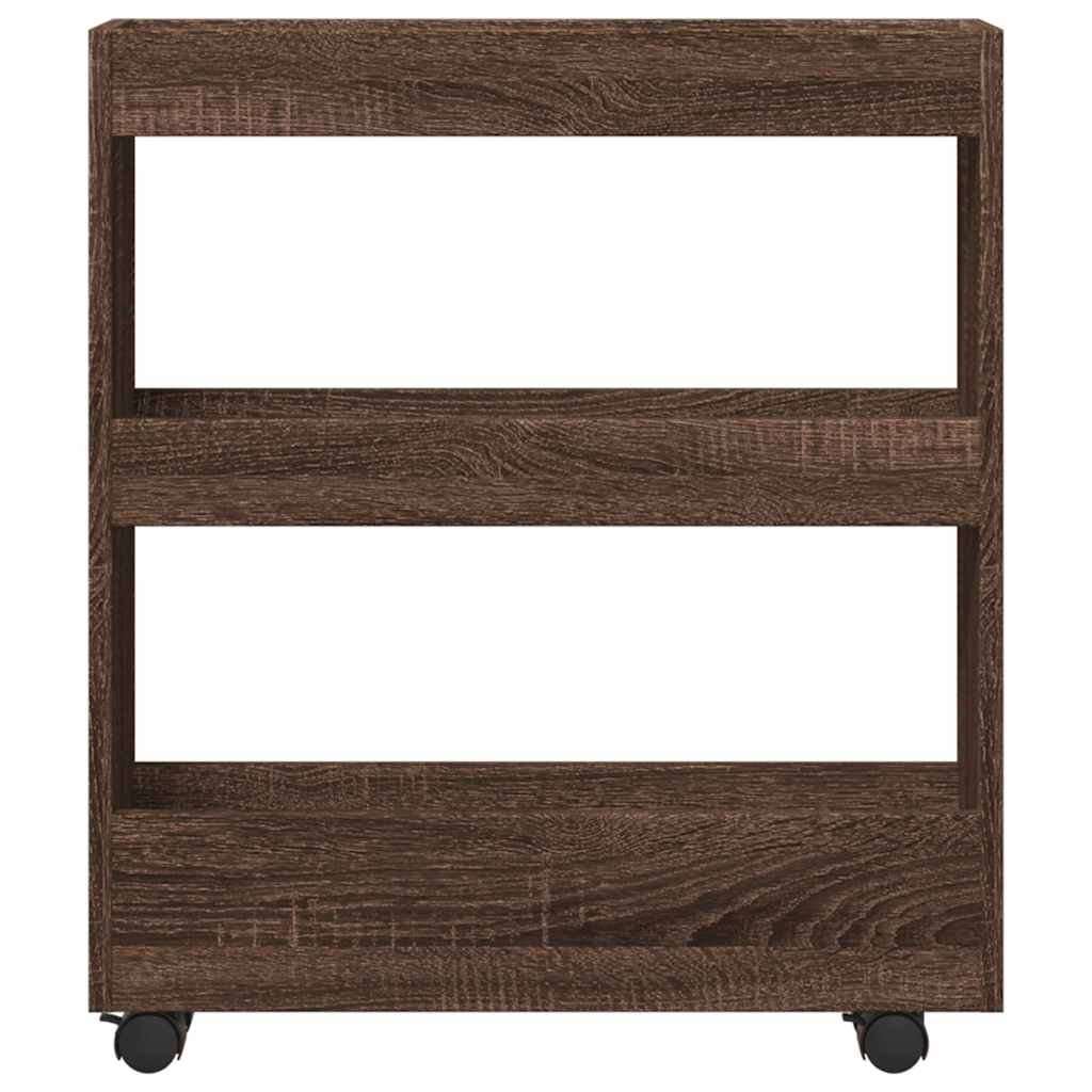 Kapea säilytysvaunu 3-kerrosta ruskea tammi tekninen puu