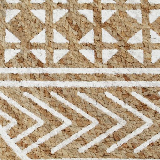 Käsintehty juuttimatto valkoisella kuviolla 120 cm