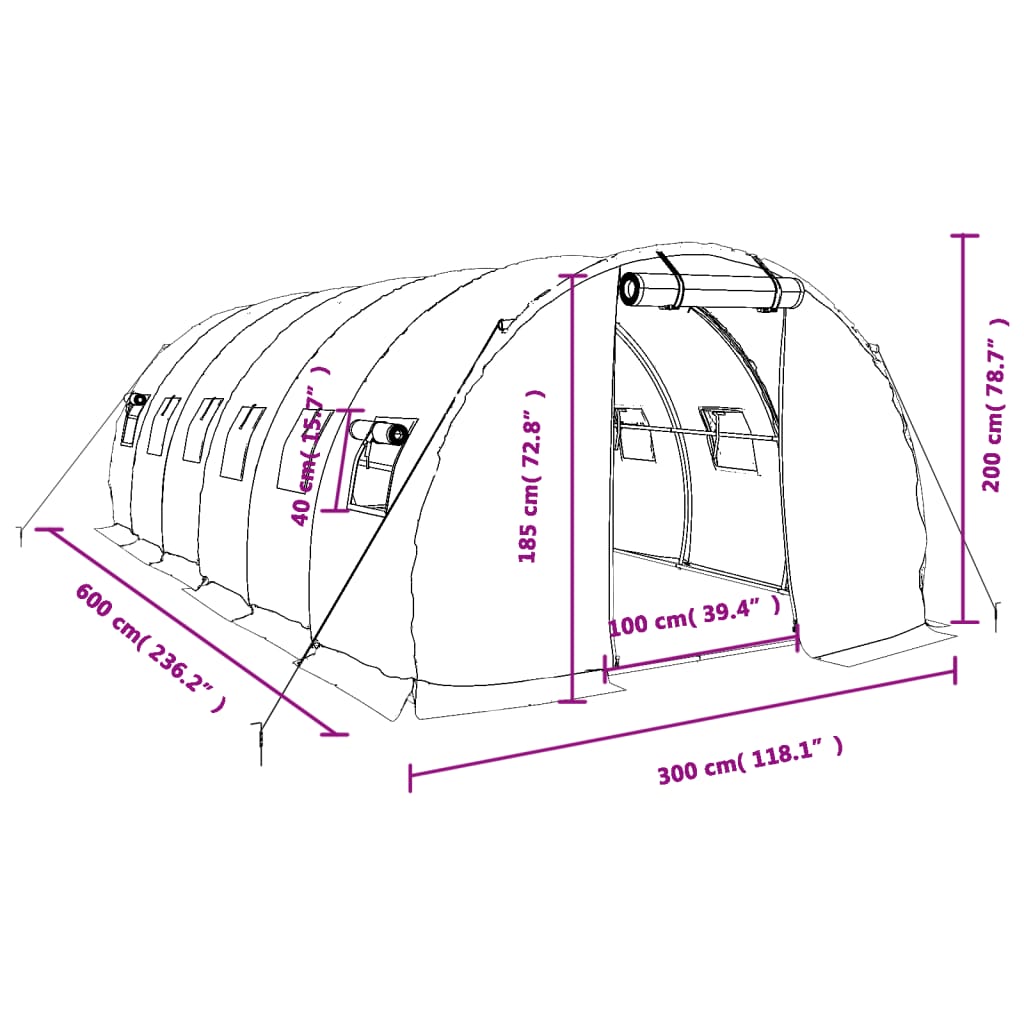 Kasvihuone teräsrungolla valkoinen 18 m² 6x3x2 m