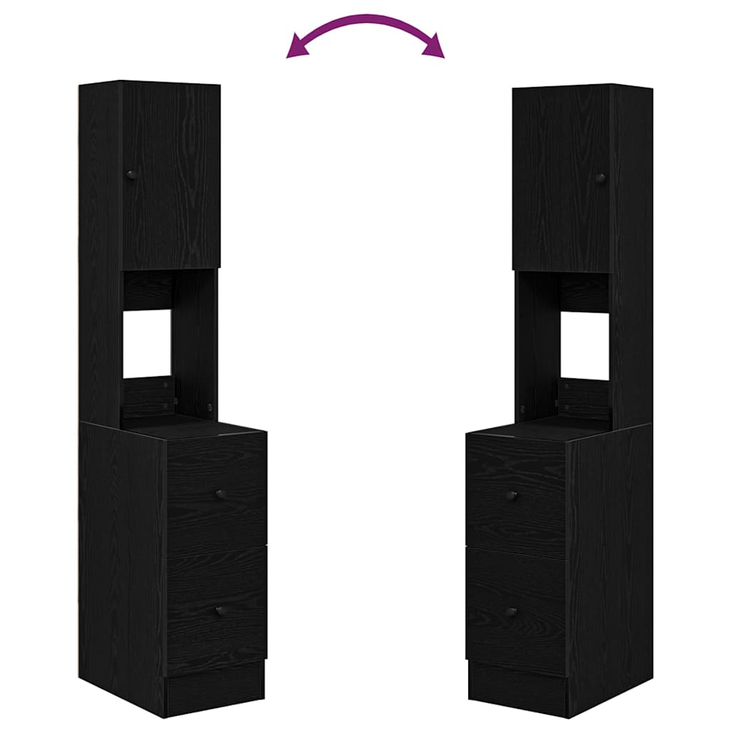 Keittiökaappi laatikon kanssa hyllyllä säilytystilassa ovella Musta tammi Tekninen puu