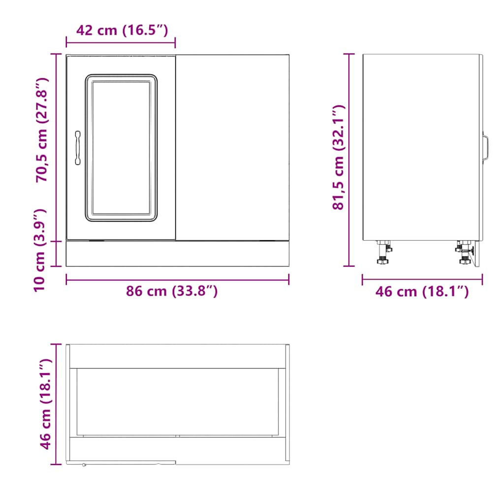 • Säädettävät jalat: Tämän kaapin jalkojen korkeutta voidaan säätää keittiösi asettelun mukaan.
