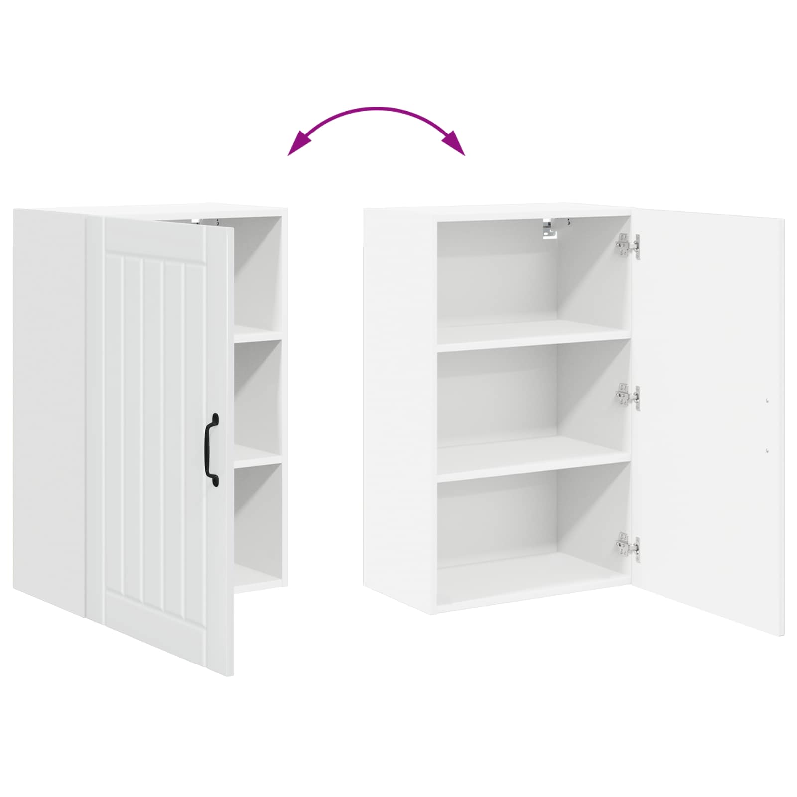 • Saranoidut ovet: Tyylikkäät saranoidut ovet lisäävät modernia ilmettä ja mahdollistavat sujuvan käytön. Mustat kahvat tuovat kaappiin näyttävää kontrastia, joka viehättää silmää.