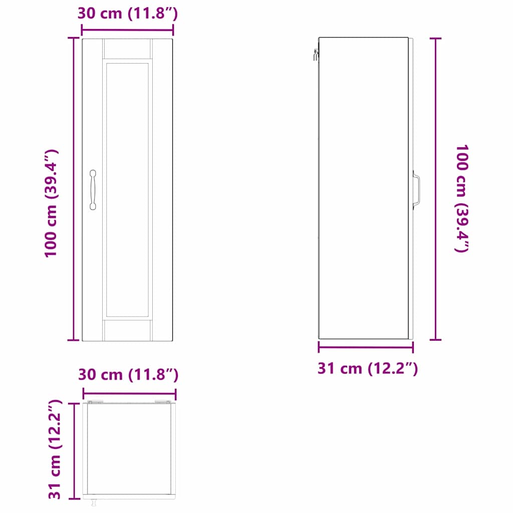 Keittiön seinäkaappi ovella Musta 30 x 31 x 100 cm Tekninen puu
