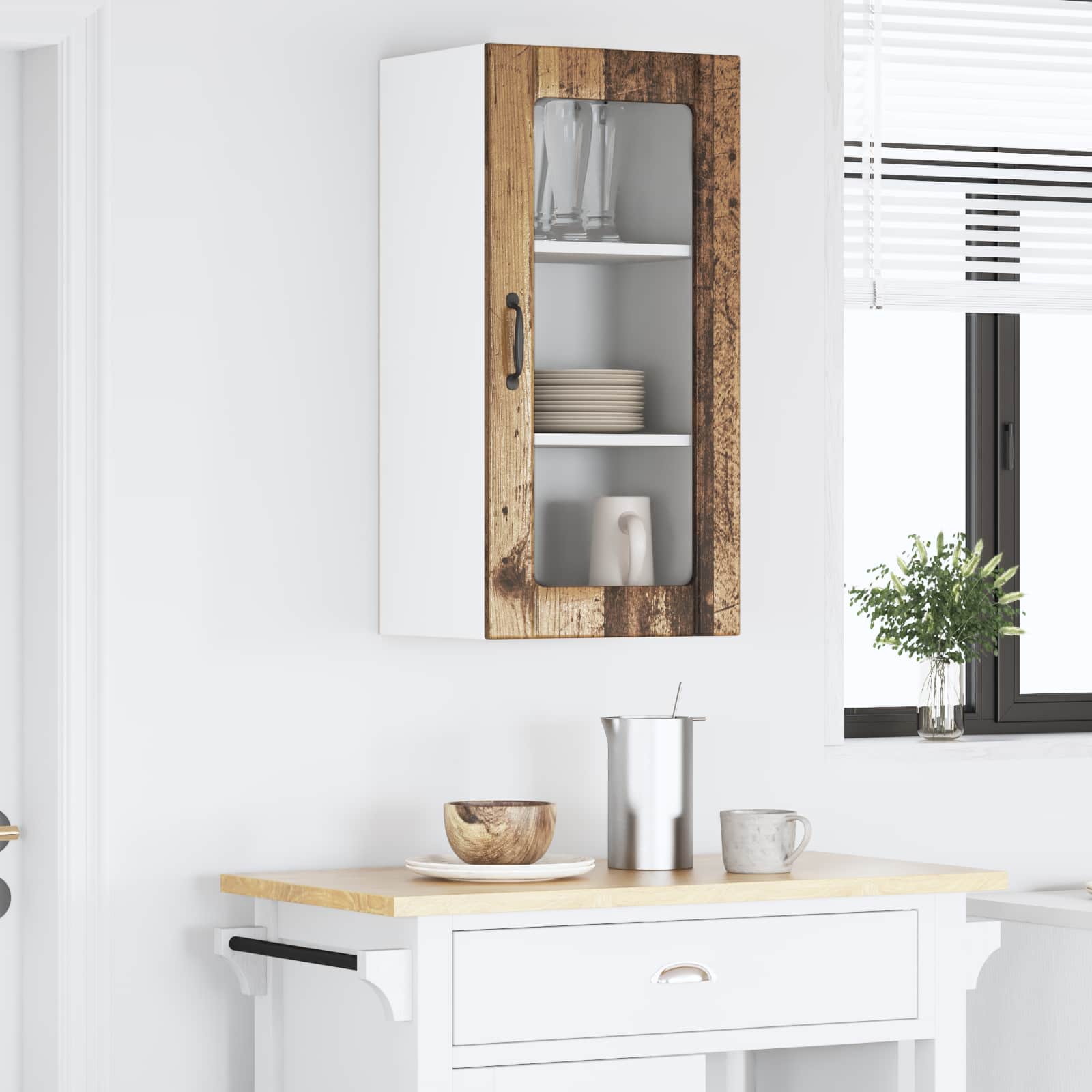 • Suositellut käyttötavat: Tämä seinäkaappi on paras sisäkäyttöön, erityisesti keittiöön. Monipuolisuuden ansioista se sopii moniin käyttötarkoituksiin, kuten keittokirjojen ja välineiden säilyttämiseen peruselintarvikkeiden kanssa. Kaapin sijoittelu on suunniteltu helpottamaan esineitä varastoimista ja järjestämistä.