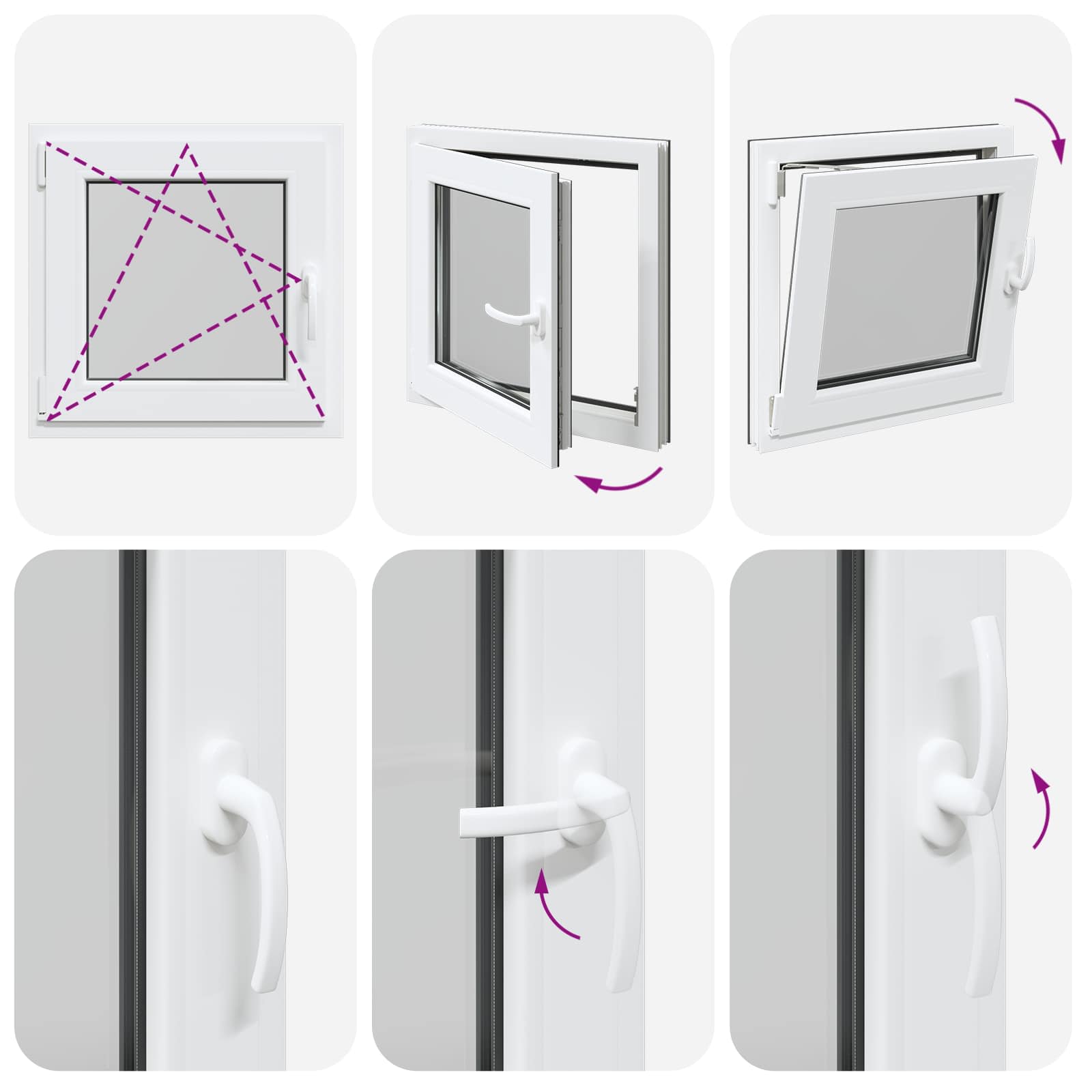 • Helppokäyttöinen: Ikkunassa on manuaalinen säätömekanismi, jonka avulla voit kalteuttaa ja kääntää ikkunaa, joten ilmanvaihdon ja auringonvalon säätö käy vaivatta. Se on muotoiltu monipuolisuutta silmällä pitäen, joten voit säätää sen juuri haluamaksesi.