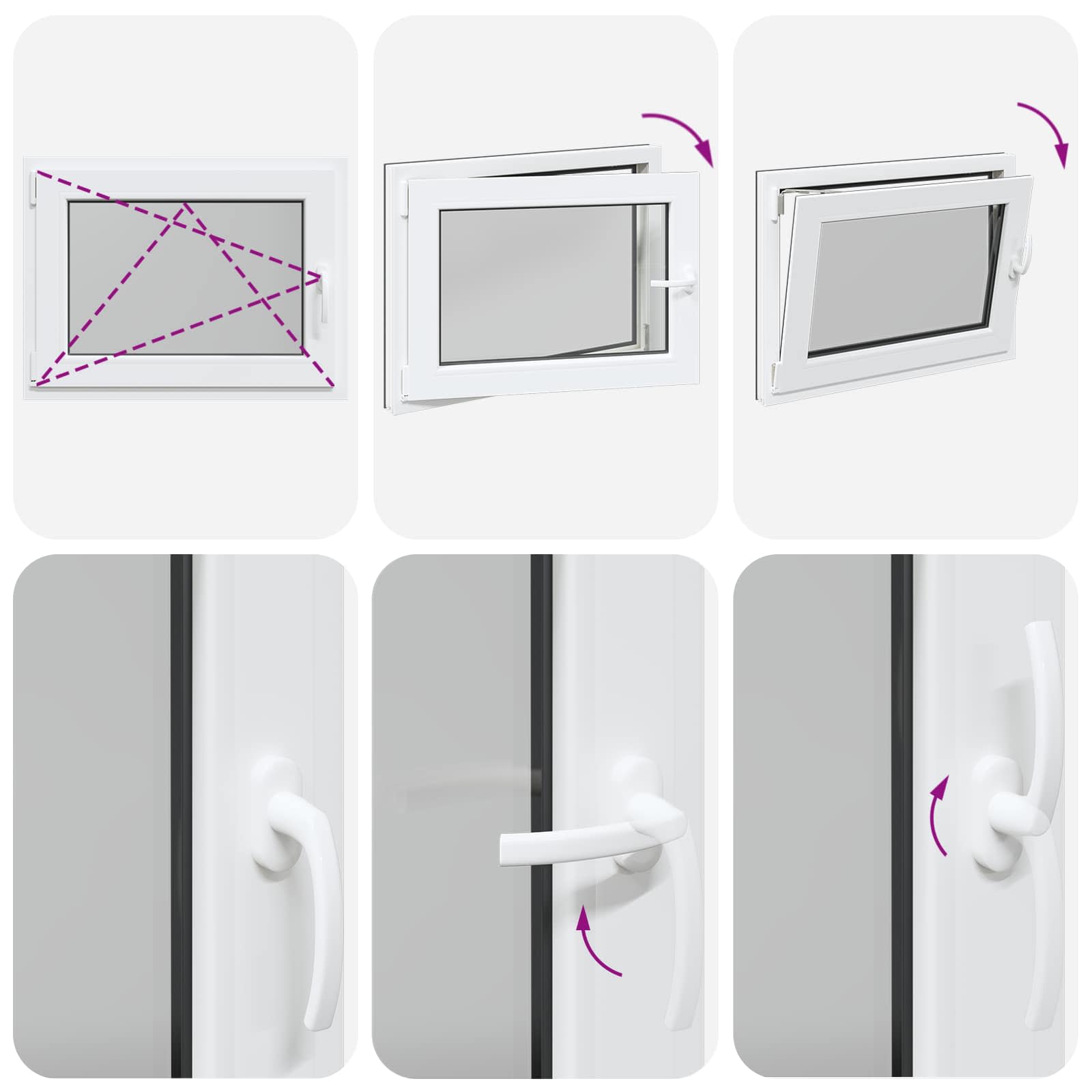 • Helppokäyttöinen: Ikkunassa on manuaalinen säätömekanismi, jonka avulla voit kalteuttaa ja kääntää ikkunaa, joten ilmanvaihdon ja auringonvalon säätö käy vaivatta. Se on muotoiltu monipuolisuutta silmällä pitäen, joten voit säätää sen juuri haluamaksesi.