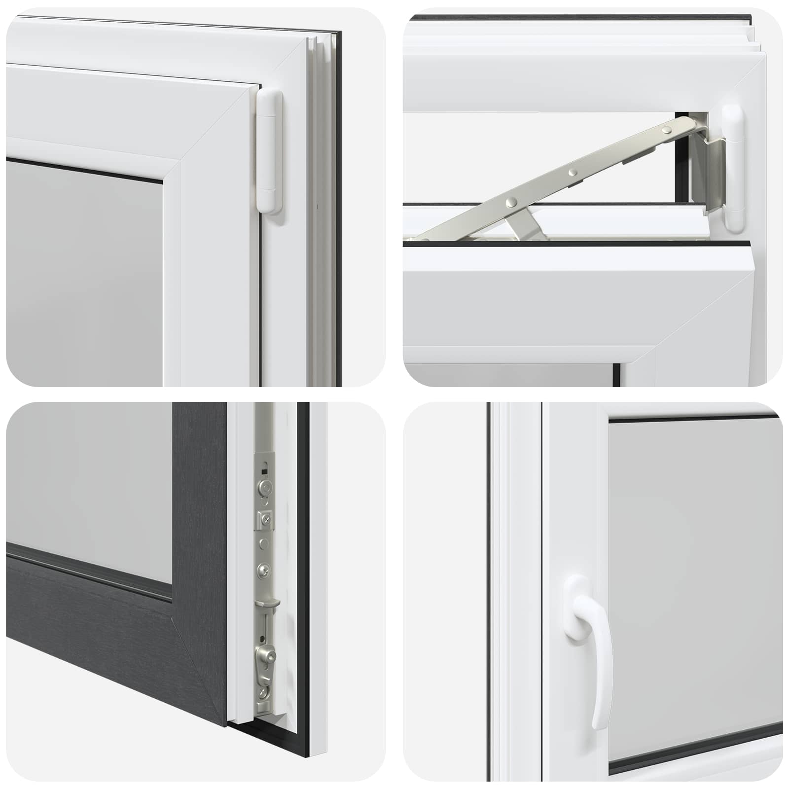 • Helppokäyttöinen: Ikkunassa on manuaalinen säätömekanismi, jonka avulla voit kalteuttaa ja kääntää ikkunaa, joten ilmanvaihdon ja auringonvalon säätö käy vaivatta. Se on muotoiltu monipuolisuutta silmällä pitäen, joten voit säätää sen juuri haluamaksesi.