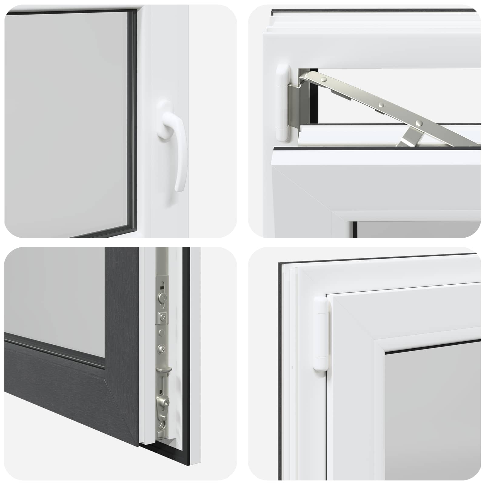 • Helppokäyttöinen: Ikkunassa on manuaalinen säätömekanismi, jonka avulla voit kalteuttaa ja kääntää ikkunaa, joten ilmanvaihdon ja auringonvalon säätö käy vaivatta. Se on muotoiltu monipuolisuutta silmällä pitäen, joten voit säätää sen juuri haluamaksesi.
