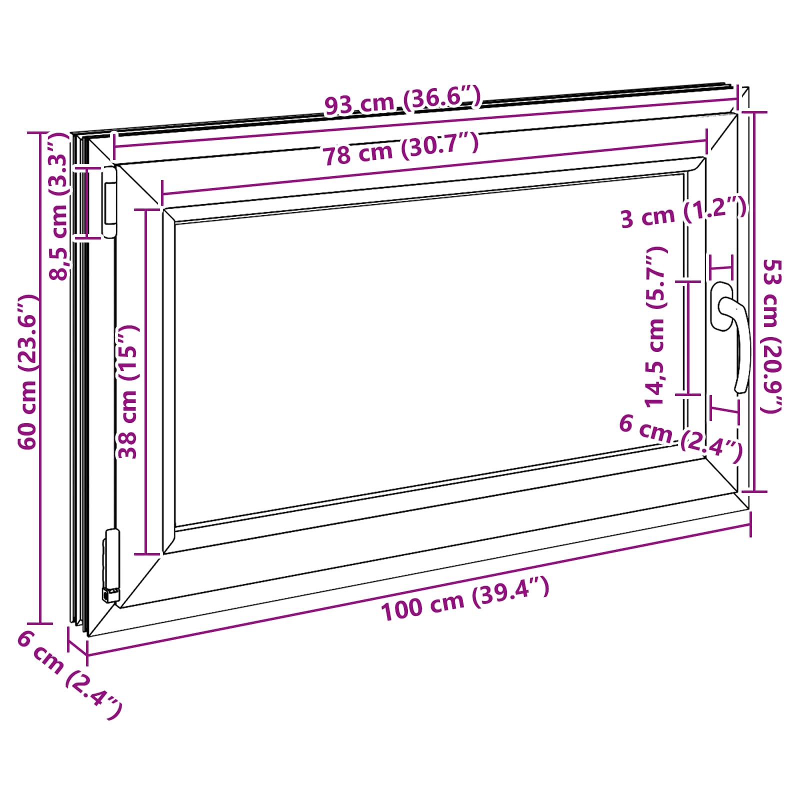 • Täydellinen kellareihin: Tämä ikkuna on suunniteltu juuri kellareita varten, joten se tuo valoa ja raikkautta kotiisi. Sen muotoilu on sopeutettava, mikä tekee siitä käytännöllisen ja visuaalisesti miellyttävän lisän arkeen.