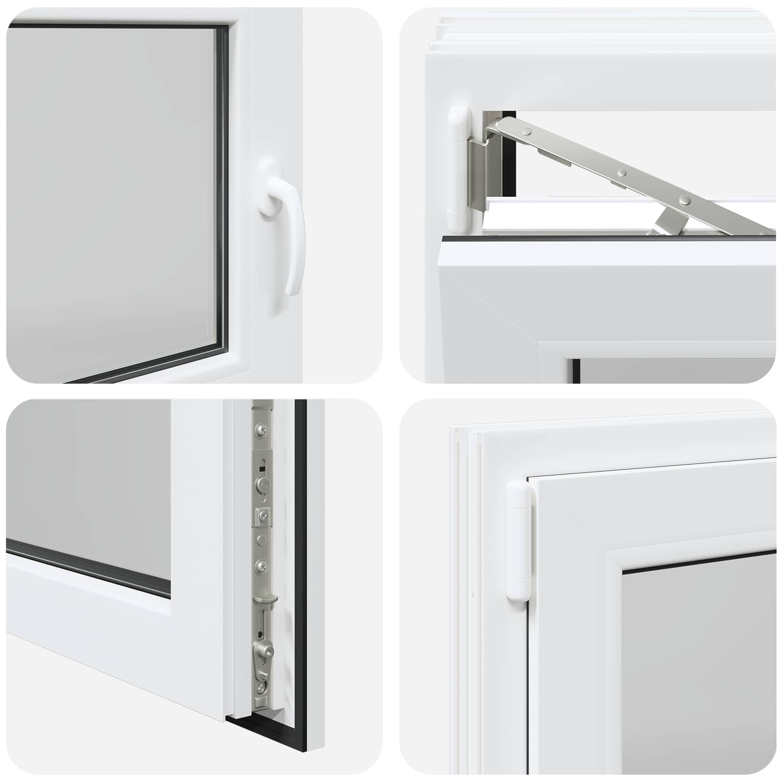• Helppokäyttöinen: Ikkunassa on manuaalinen säätömekanismi, jonka avulla voit kalteuttaa ja kääntää ikkunaa, joten ilmanvaihdon ja auringonvalon säätö käy vaivatta. Se on muotoiltu monipuolisuutta silmällä pitäen, joten voit säätää sen juuri haluamaksesi.