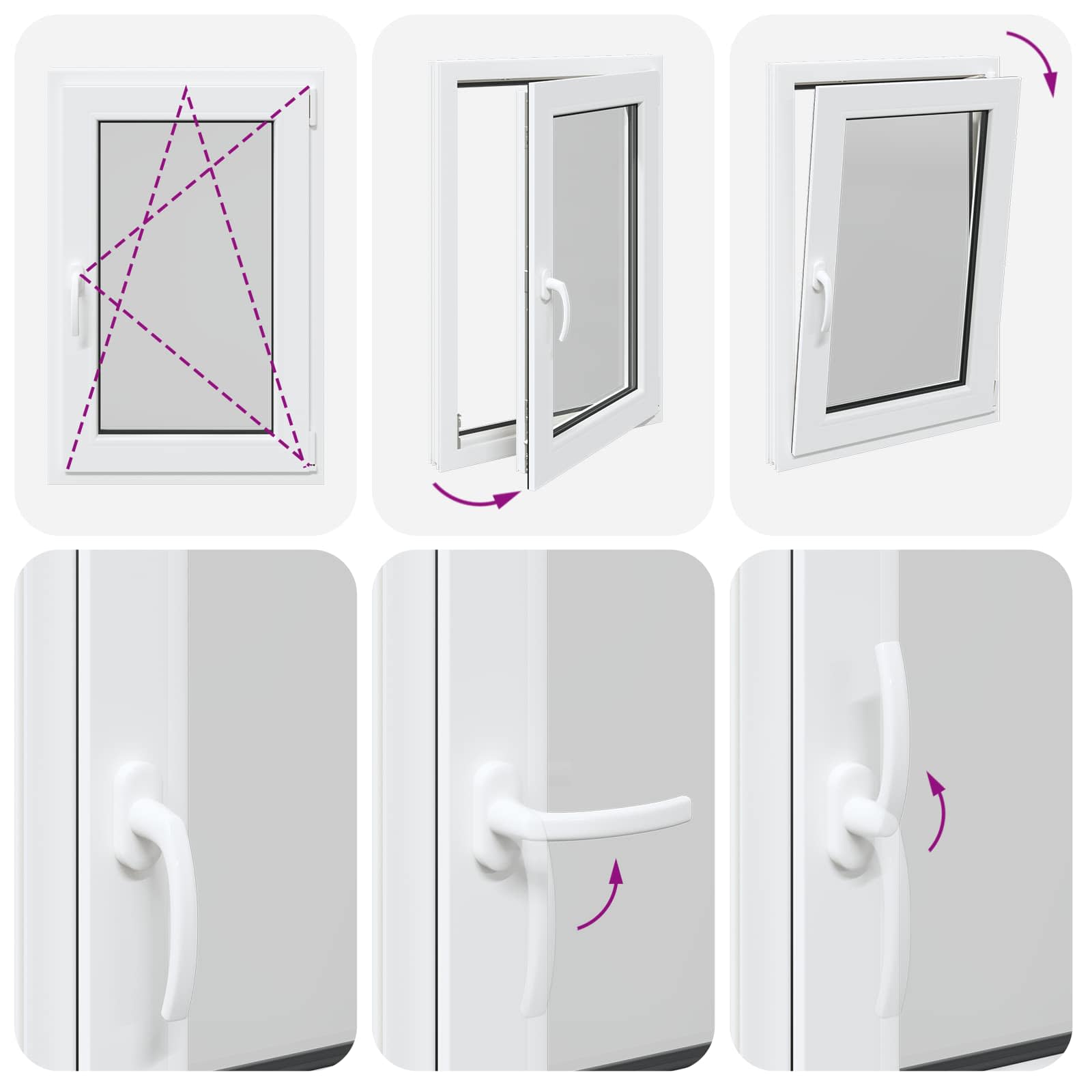 • Helppokäyttöinen: Ikkunassa on manuaalinen säätömekanismi, jonka avulla voit kalteuttaa ja kääntää ikkunaa, joten ilmanvaihdon ja auringonvalon säätö käy vaivatta. Se on muotoiltu monipuolisuutta silmällä pitäen, joten voit säätää sen juuri haluamaksesi.