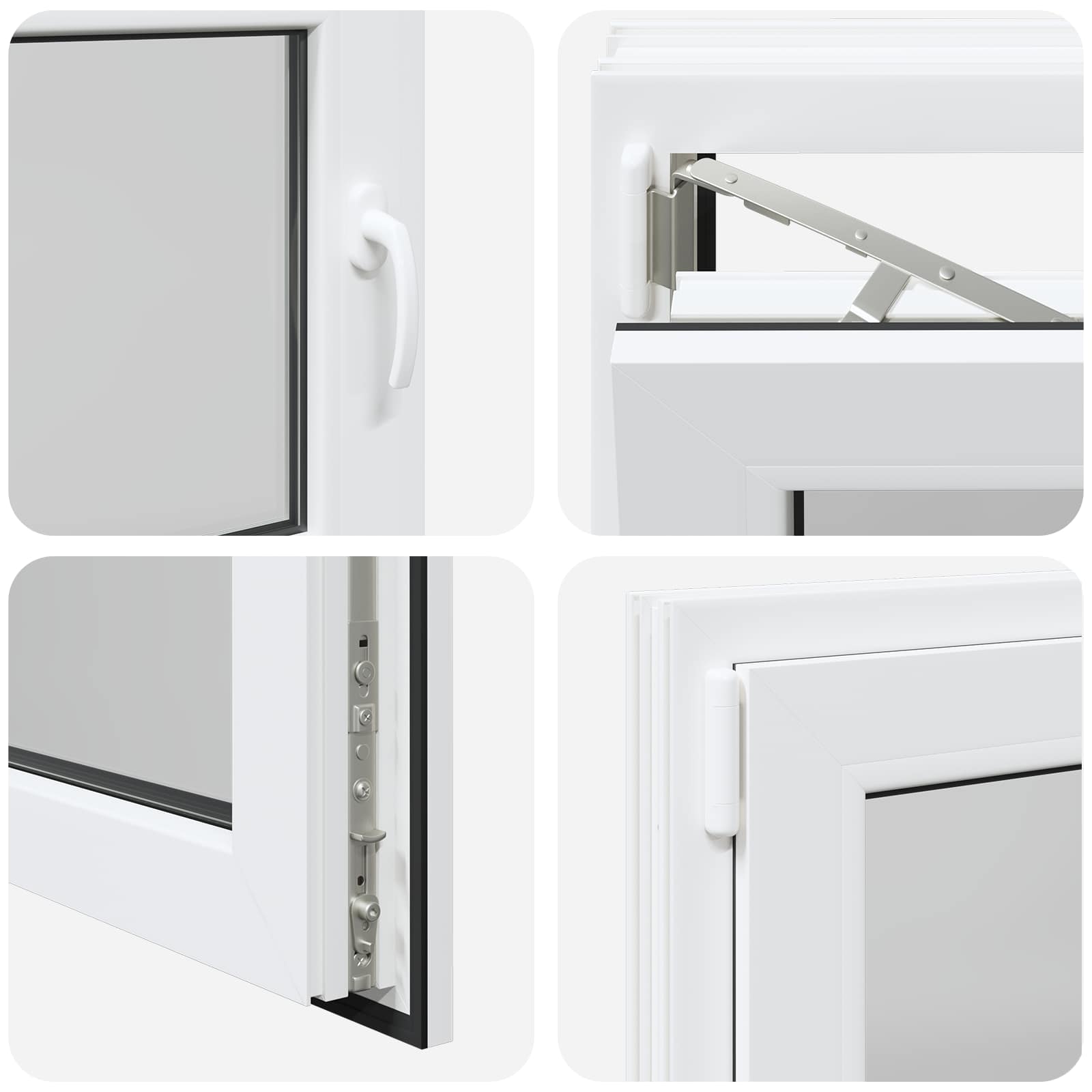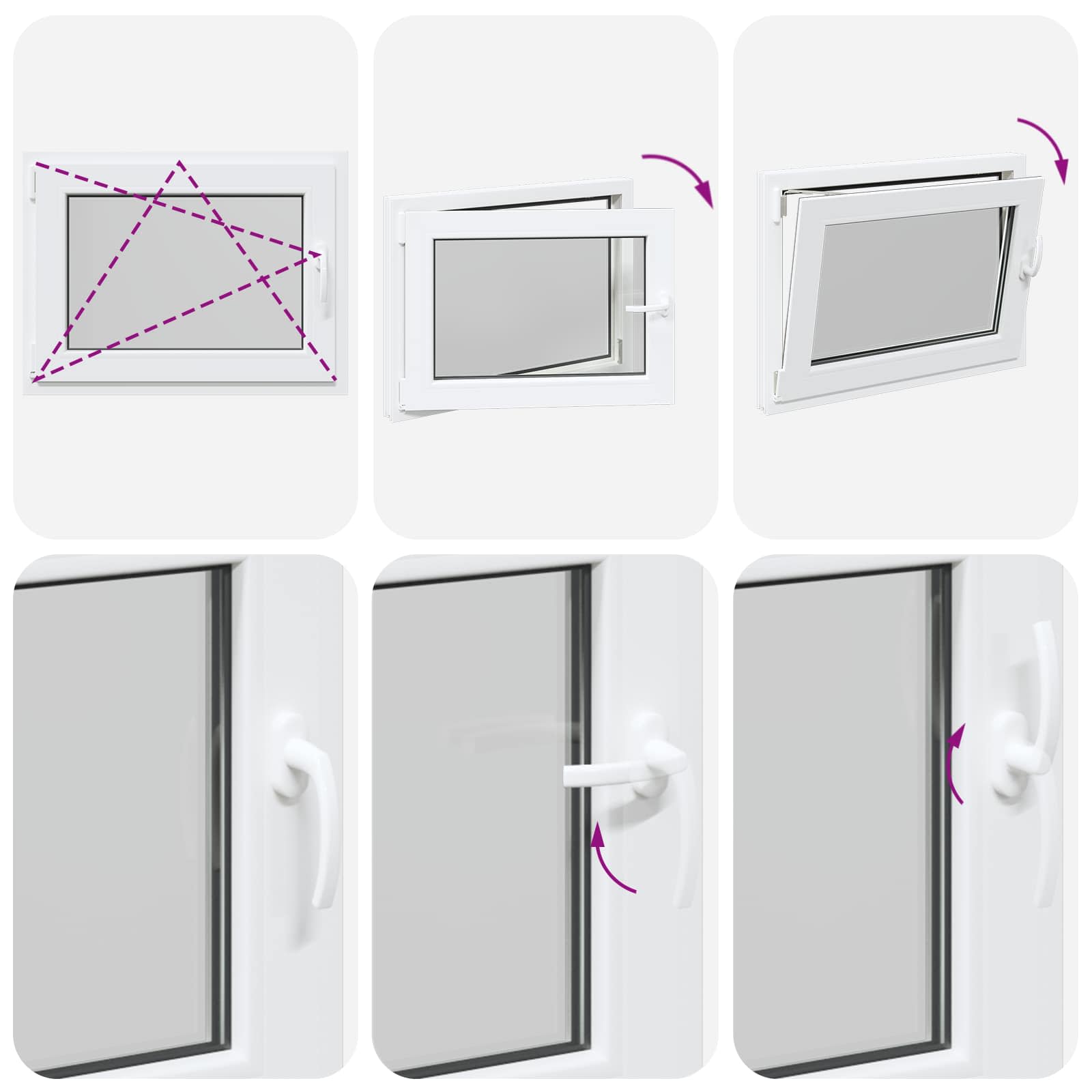• Helppokäyttöinen: Ikkunassa on manuaalinen säätömekanismi, jonka avulla voit kalteuttaa ja kääntää ikkunaa, joten ilmanvaihdon ja auringonvalon säätö käy vaivatta. Se on muotoiltu monipuolisuutta silmällä pitäen, joten voit säätää sen juuri haluamaksesi.