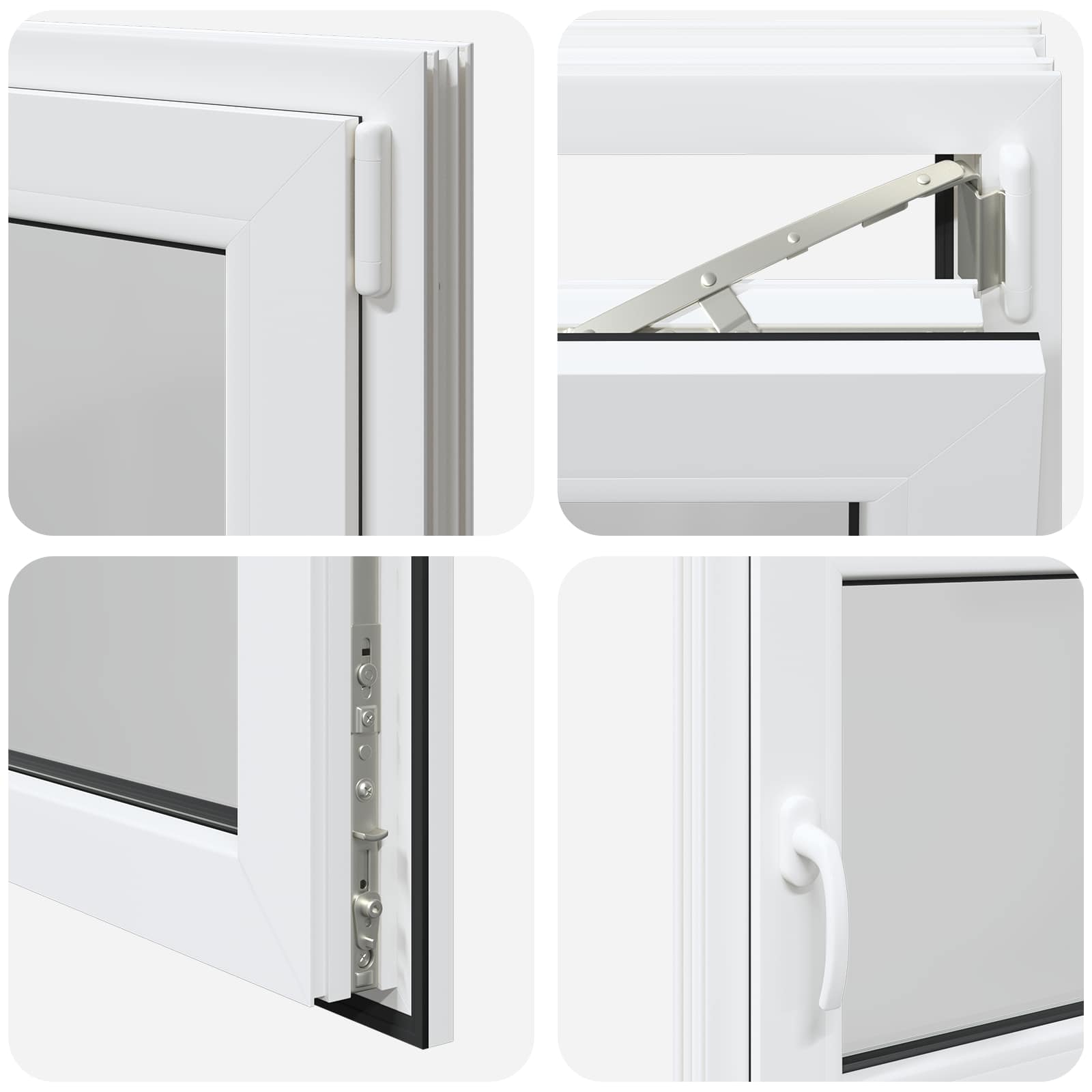 • Helppokäyttöinen: Ikkunassa on manuaalinen säätömekanismi, jonka avulla voit kalteuttaa ja kääntää ikkunaa, joten ilmanvaihdon ja auringonvalon säätö käy vaivatta. Se on muotoiltu monipuolisuutta silmällä pitäen, joten voit säätää sen juuri haluamaksesi.