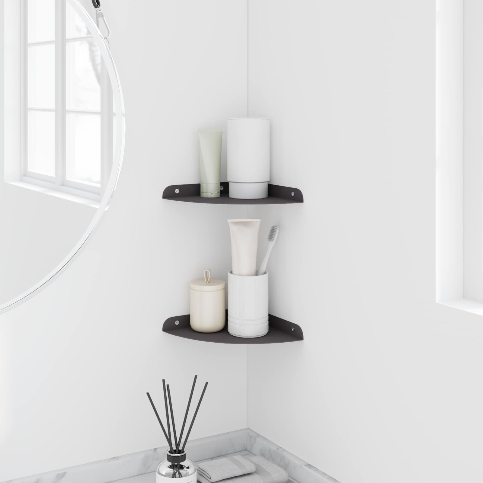 Tämä teräksinen hylly yhdistää modernin tyylin ja käytännöllisyyden. Kulmamuotoilu tekee siitä täydellisen niille, jotka arvostavat minimalistista estetiikkaa ilman käytännöllisyyden uhraamista. Asennettuna se parantaa tilan ilmettä ja tarjoaa samalla tehokasta säilytystä.
