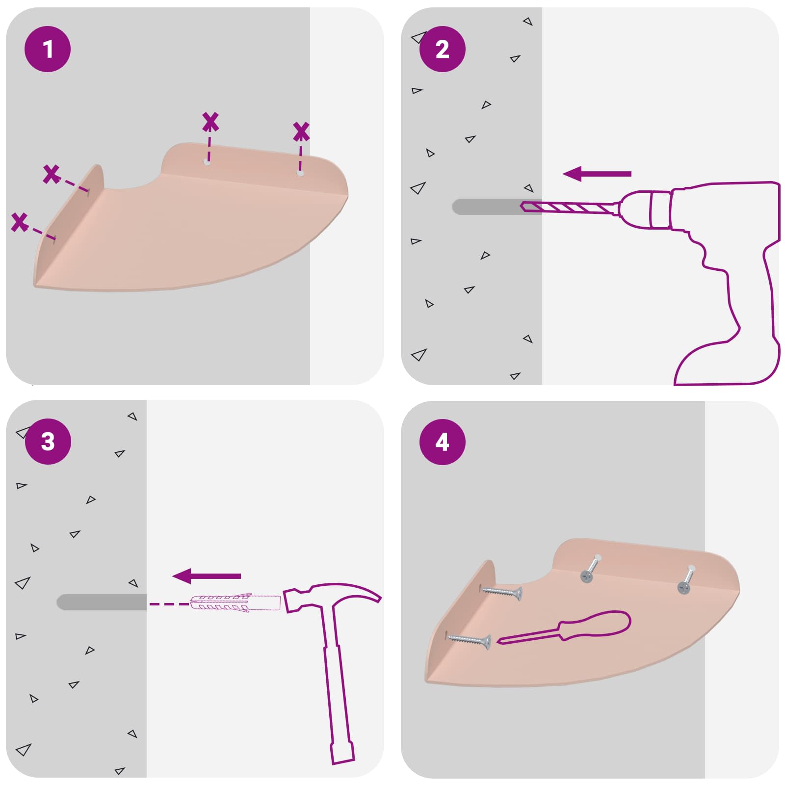 • Seinään asennettavat ruuvit ja tulpat eivät sisälly toimitukseen. Suosittelemme hankkimaan ja käyttämään juuri omille seinillesi sopivia ruuveja ja tulppia.