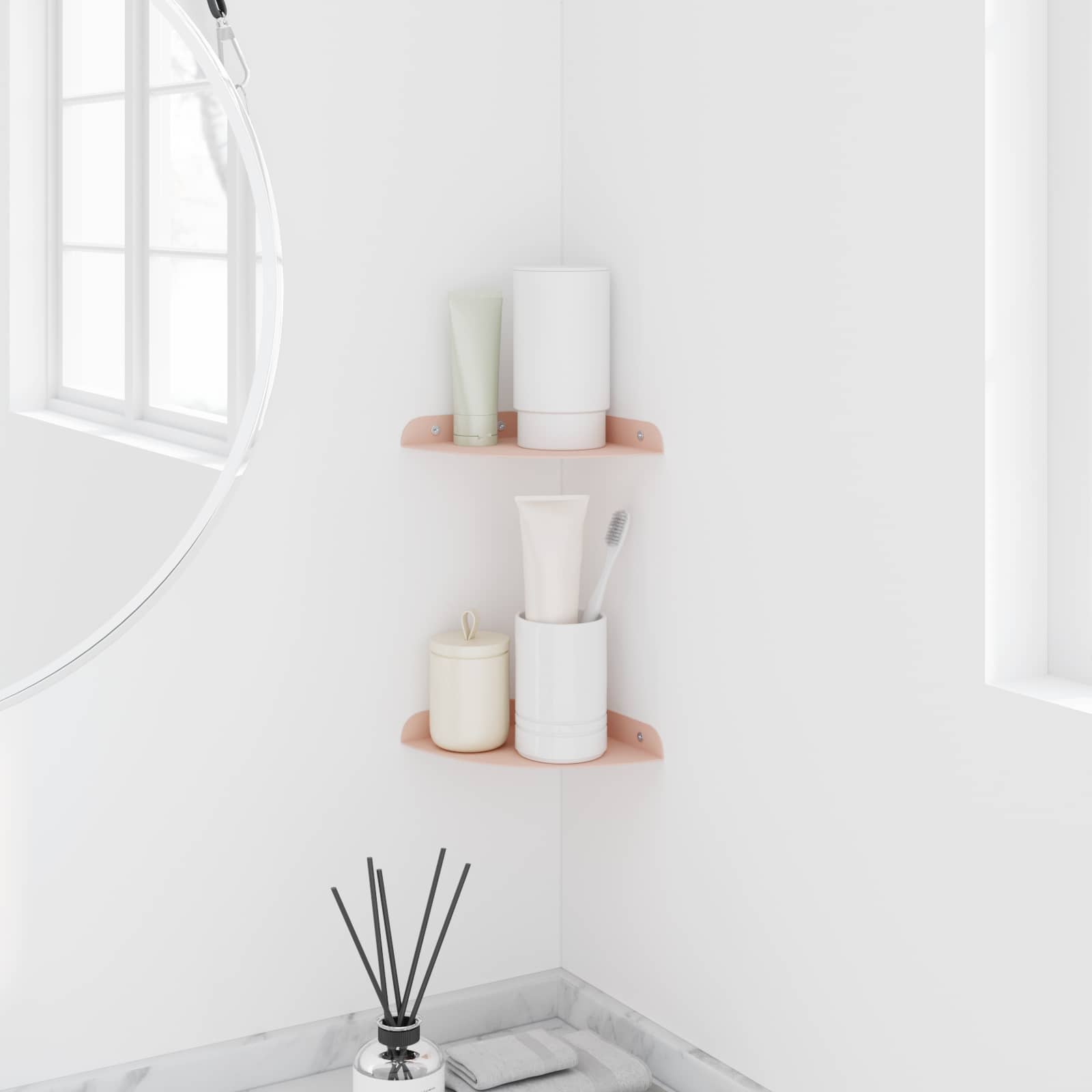 Tämä teräksinen hylly yhdistää modernin tyylin ja käytännöllisyyden. Kulmamuotoilu tekee siitä täydellisen niille, jotka arvostavat minimalistista estetiikkaa ilman käytännöllisyyden uhraamista. Asennettuna se parantaa tilan ilmettä ja tarjoaa samalla tehokasta säilytystä.